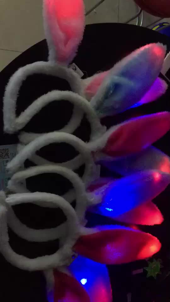 发光毛绒兔耳朵大号闪光兔耳朵头箍演唱会道具发光玩具现货厂家