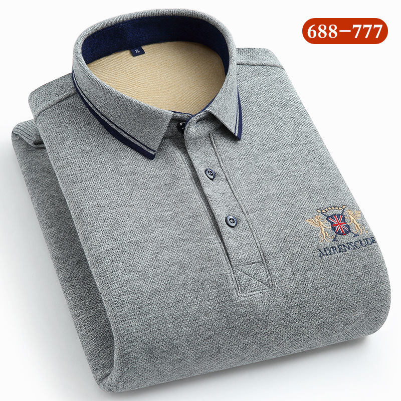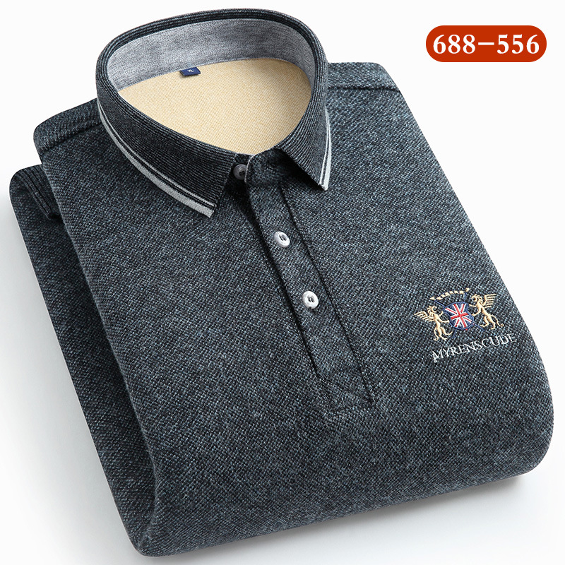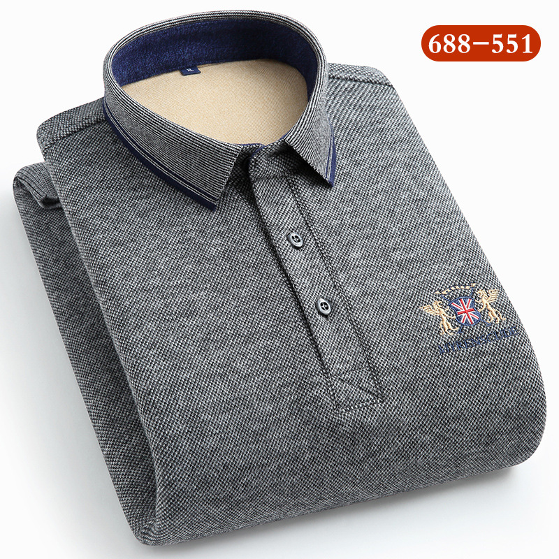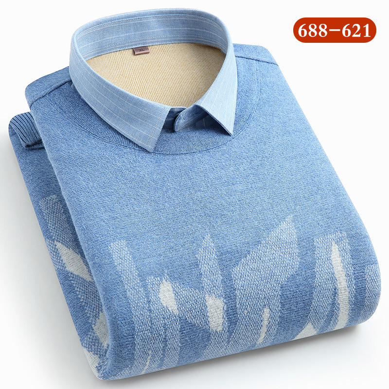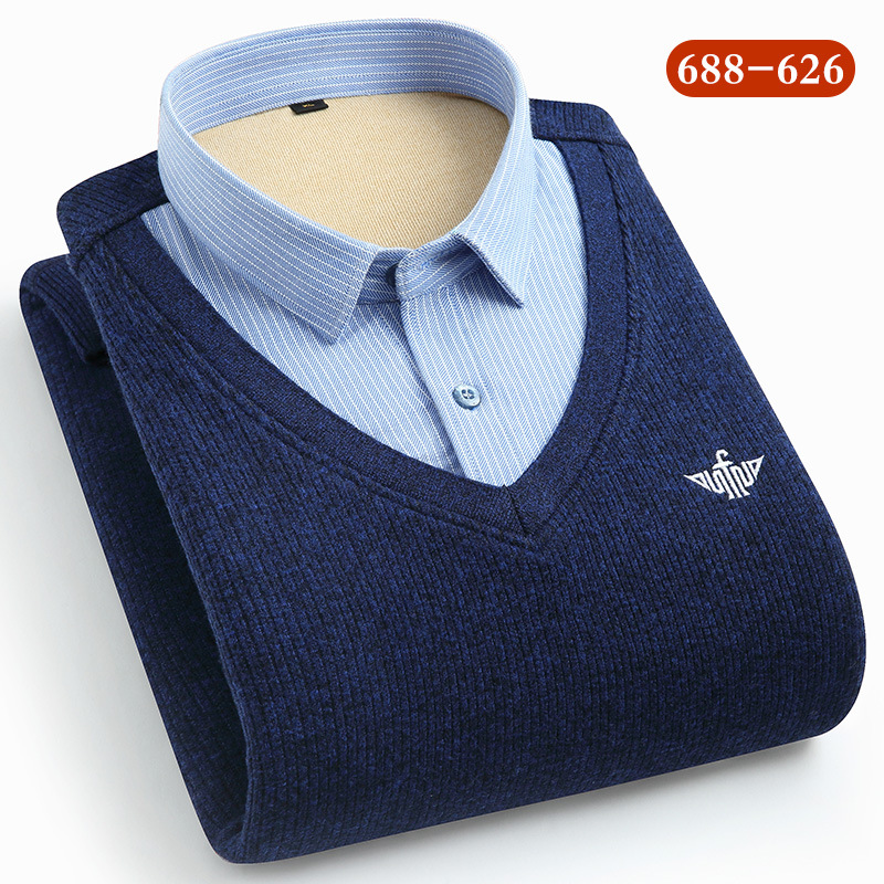高品质冬季新款男士长袖衬衫加绒加厚保暖衬衣打底衫假两件针织衫