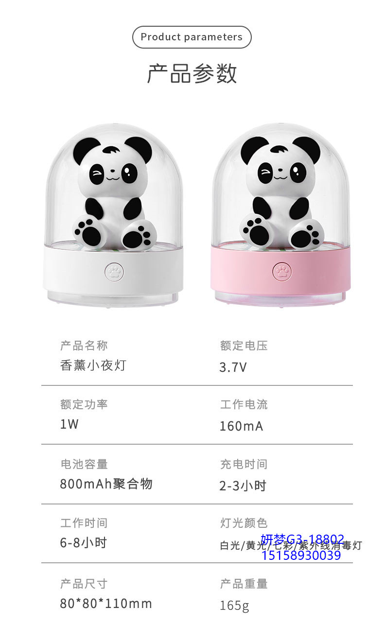 小熊猫香薰小夜灯USB充电消毒灯床头氛围创意夜灯书房灯桌面LED灯