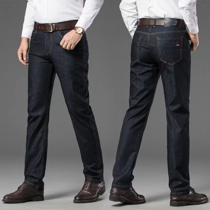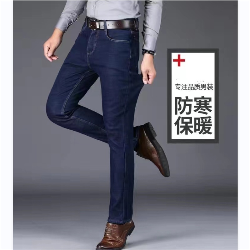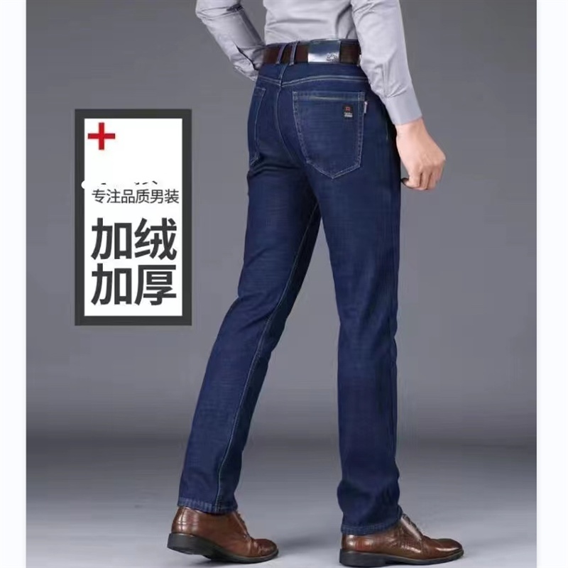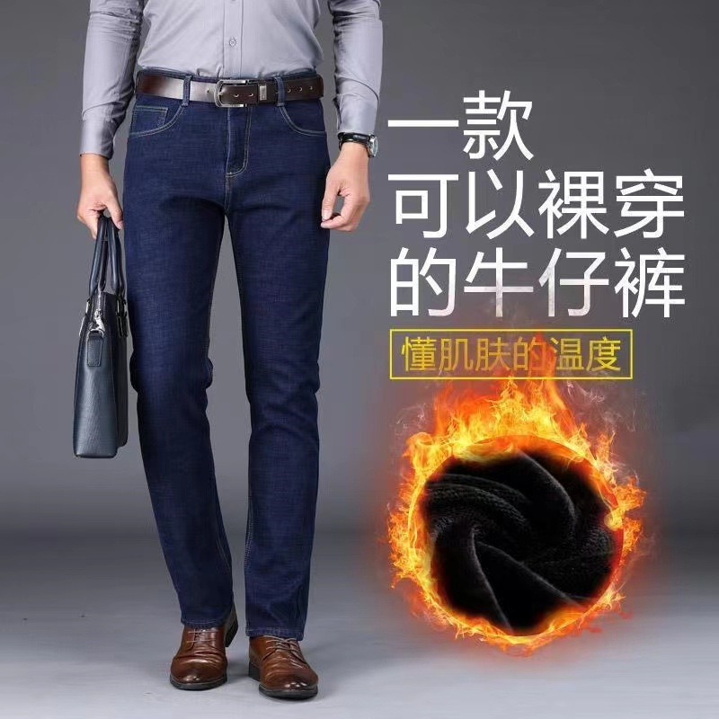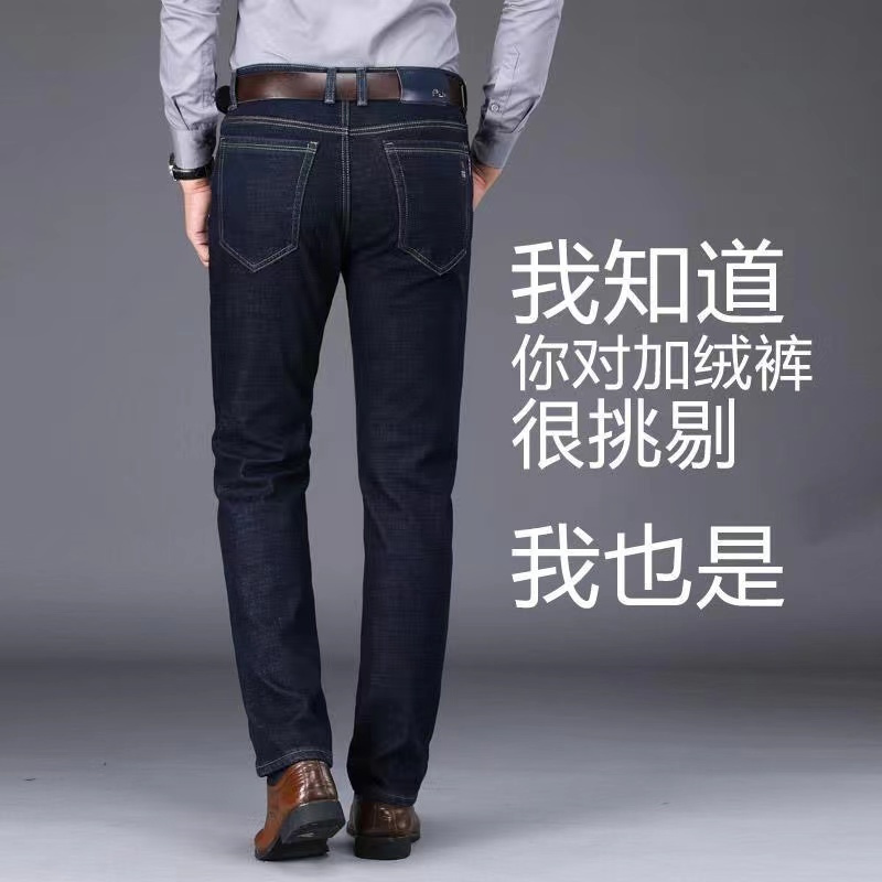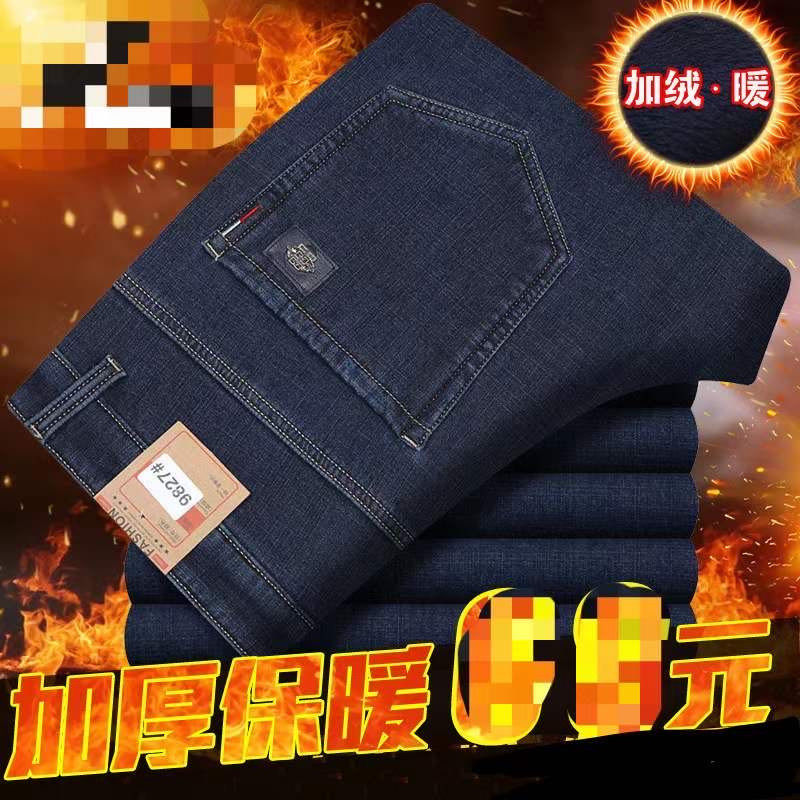 冬季加绒牛仔裤男士保暖休闲裤加厚宽松直筒商务长裤厂家直销货源