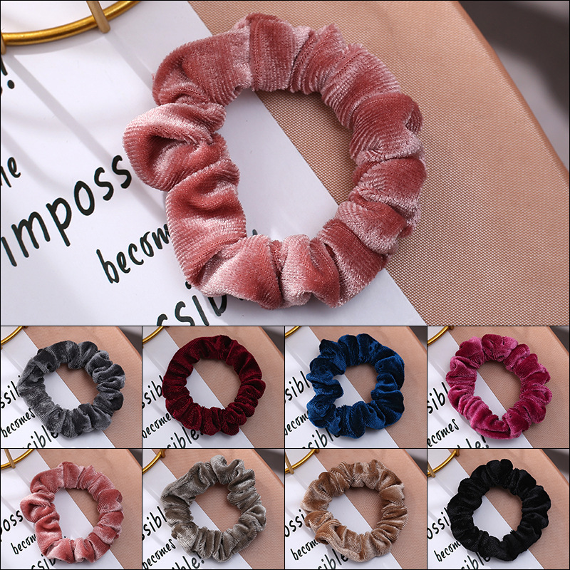 跨境货源欧美爆款单色发绳绒布扎马尾单色发圈发带金丝绒大肠发圈