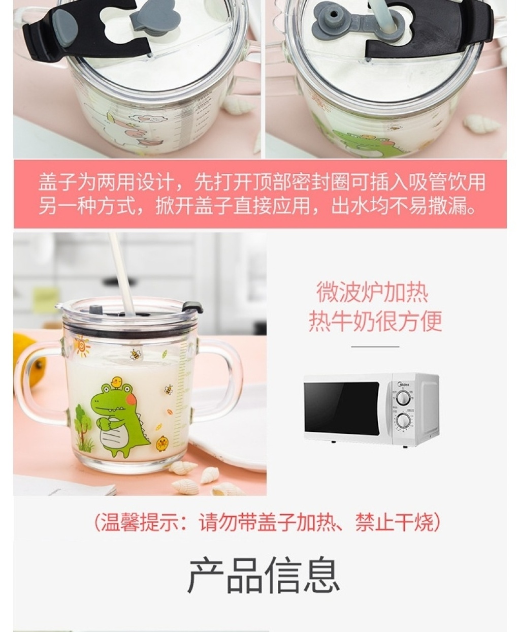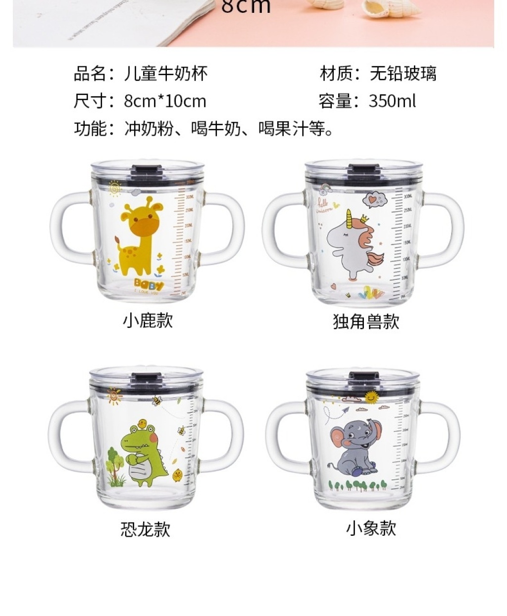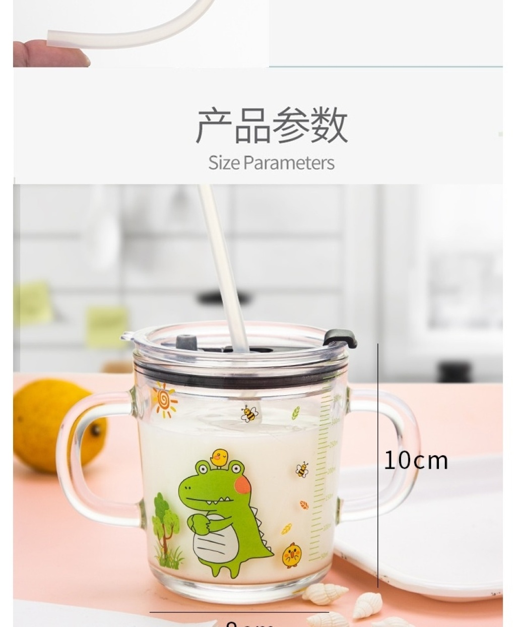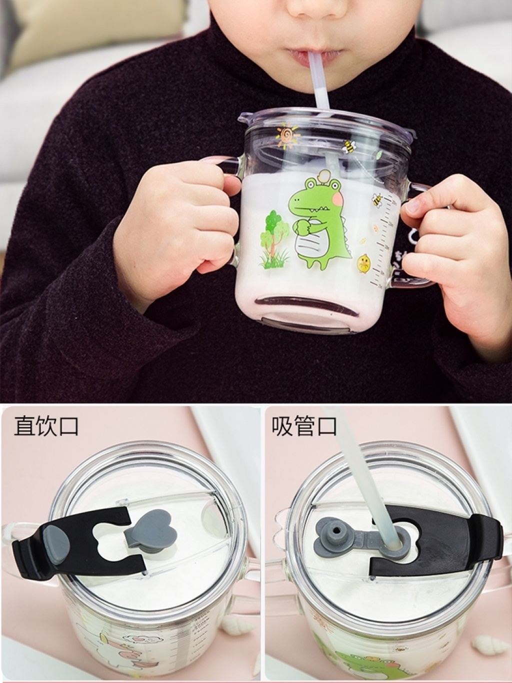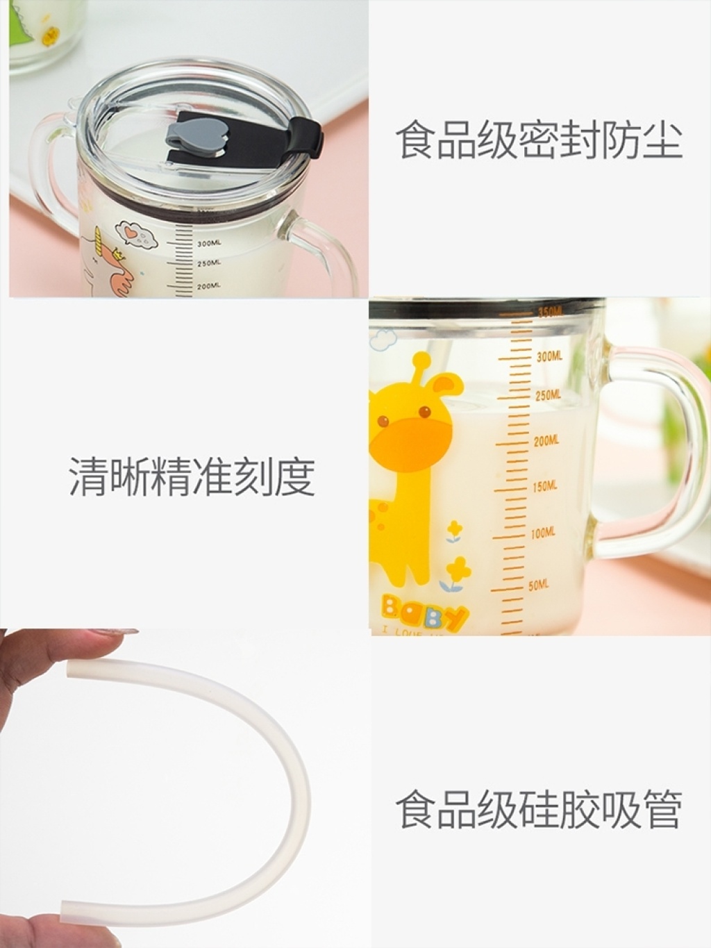 儿童水杯家用简约清新森系可爱少女泡茶杯玻璃杯子带盖吸管刻度杯