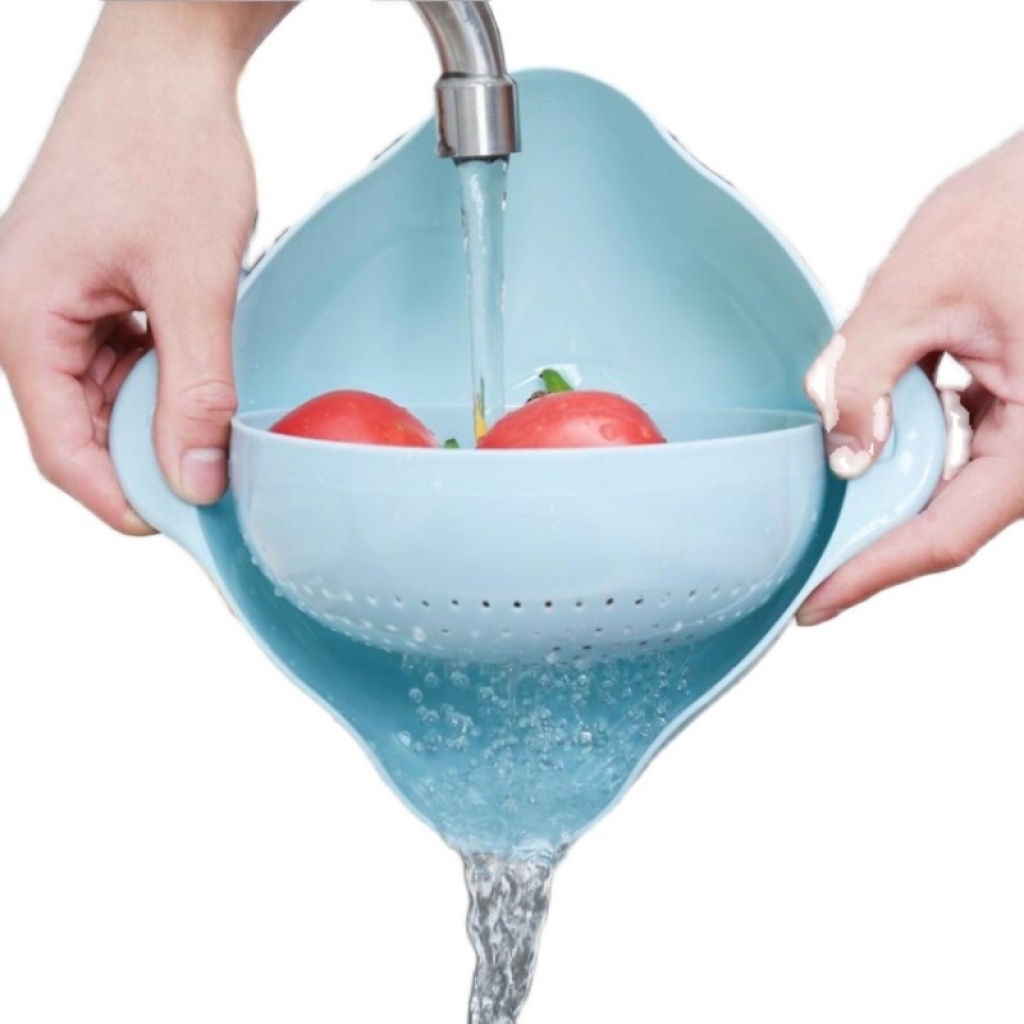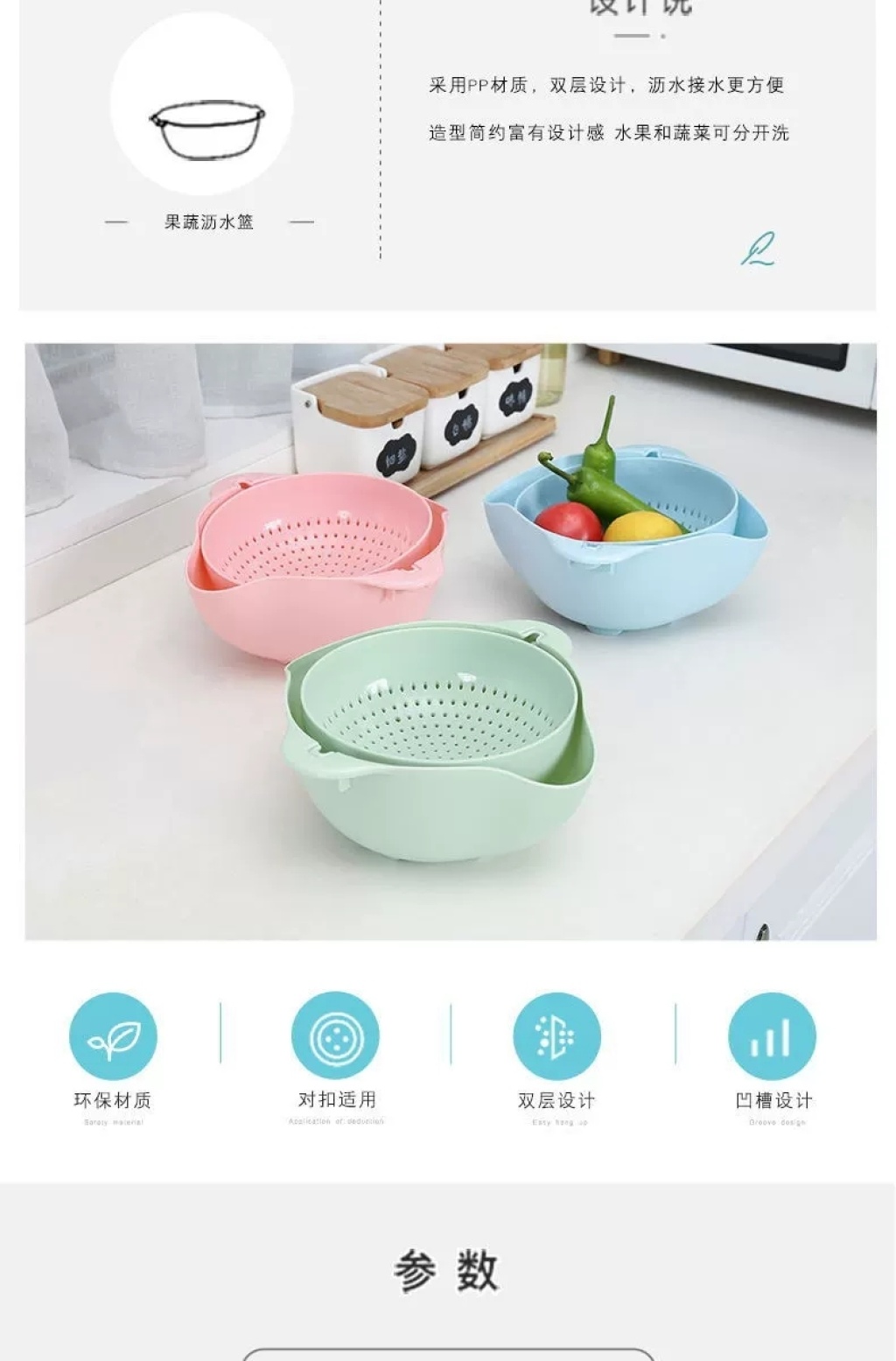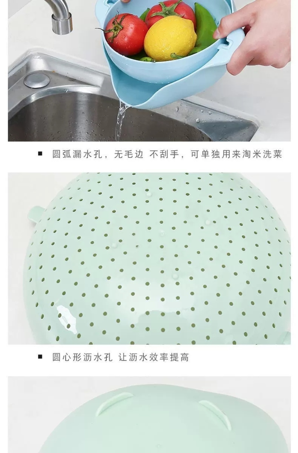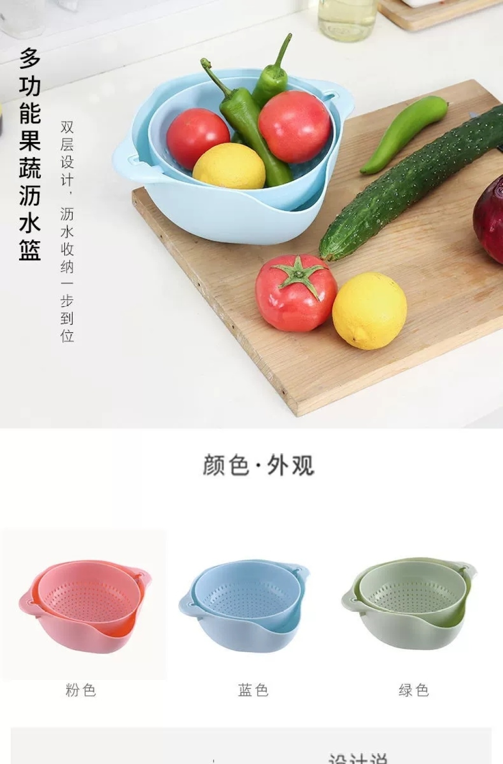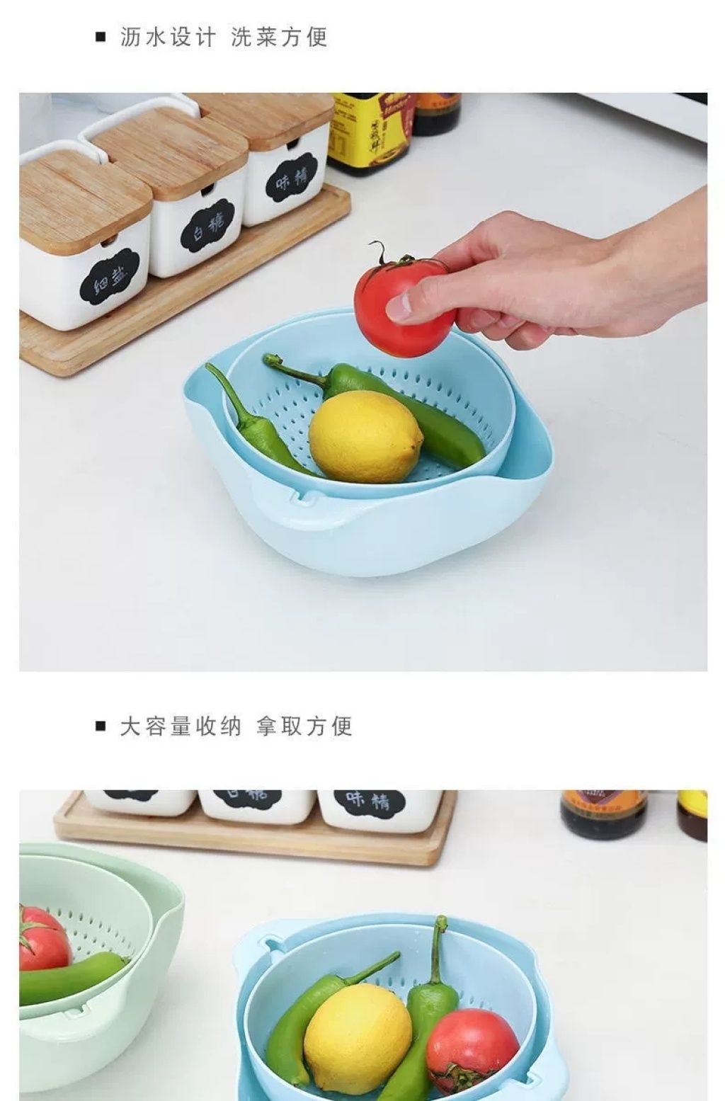 双层可翻转洗菜盆沥水篮厨房家用淘米蓝塑料洗水果蔬菜篮子水果盘