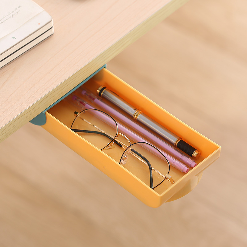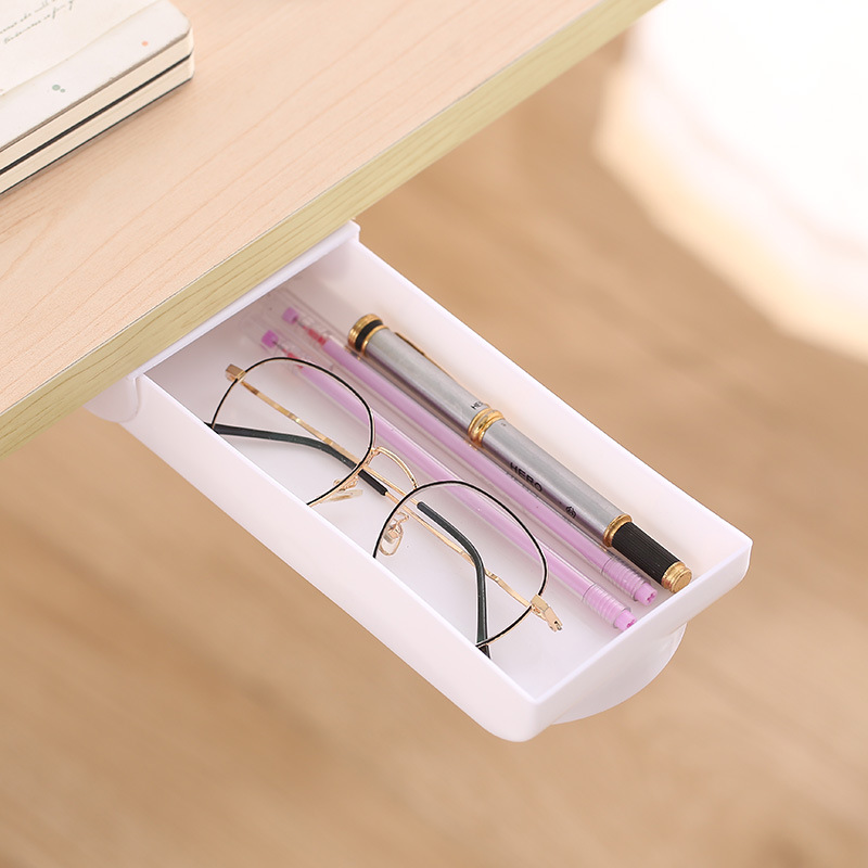 抽屉式桌下收纳盒家用办公桌底粘贴式收纳整理盒隐藏学生文具盒