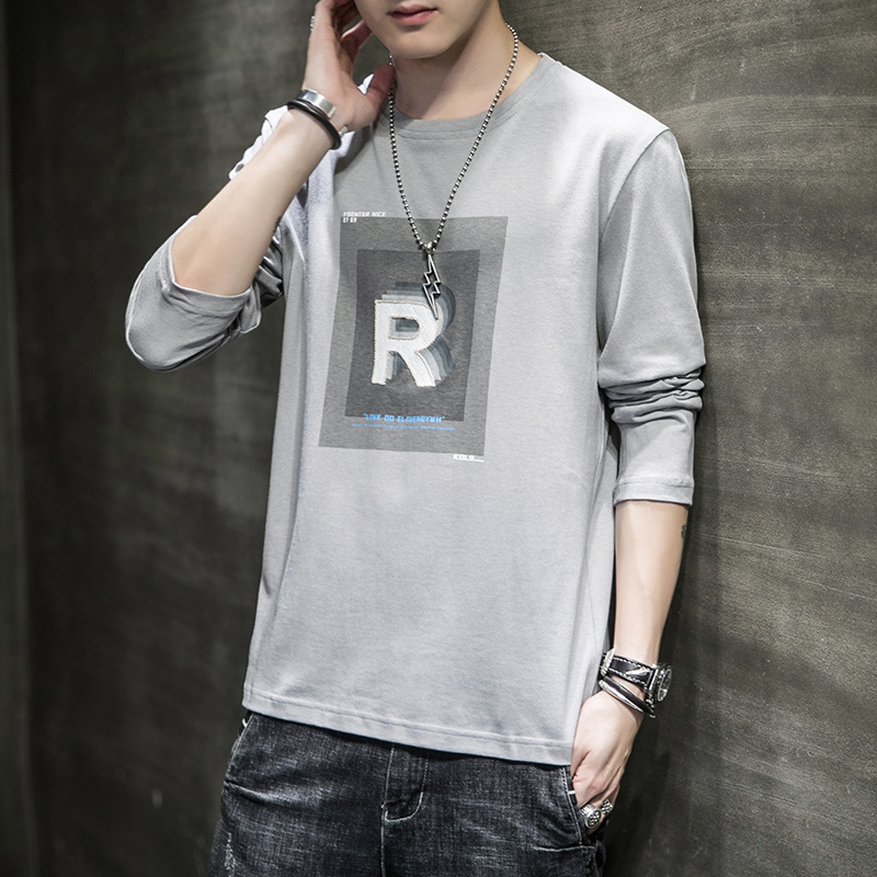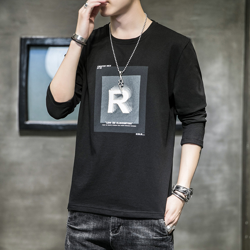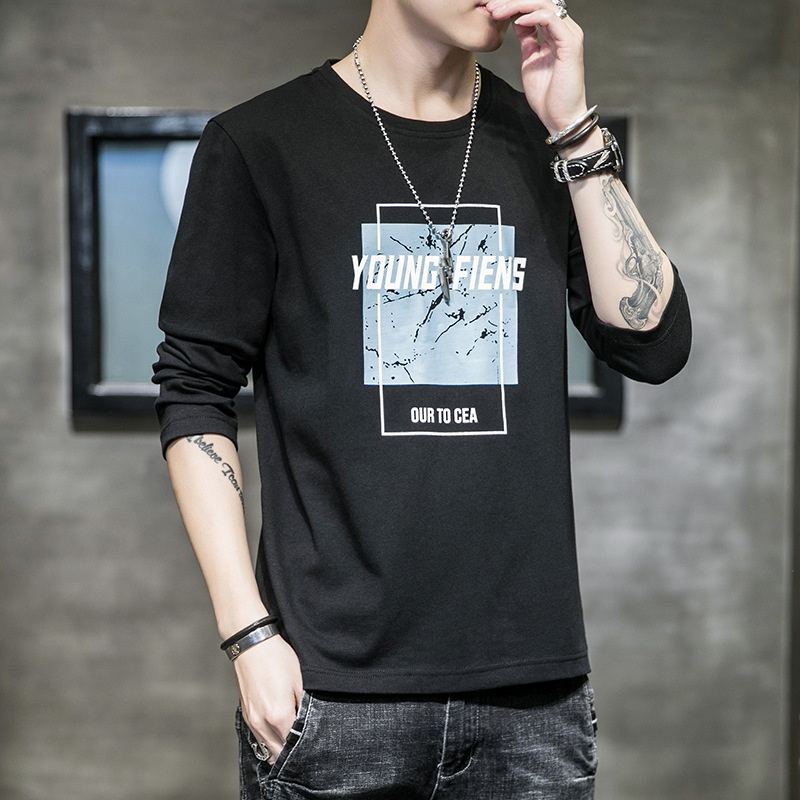 长袖t恤男士潮牌ins宽松春秋运动韩版潮流纯棉休闲体恤衫