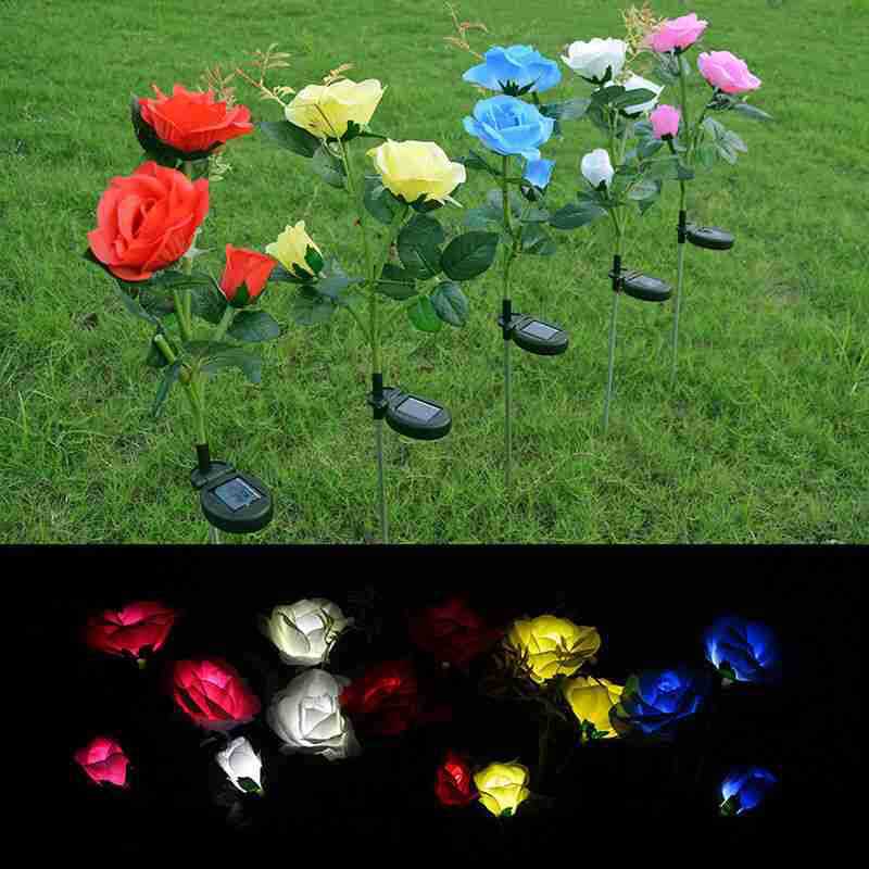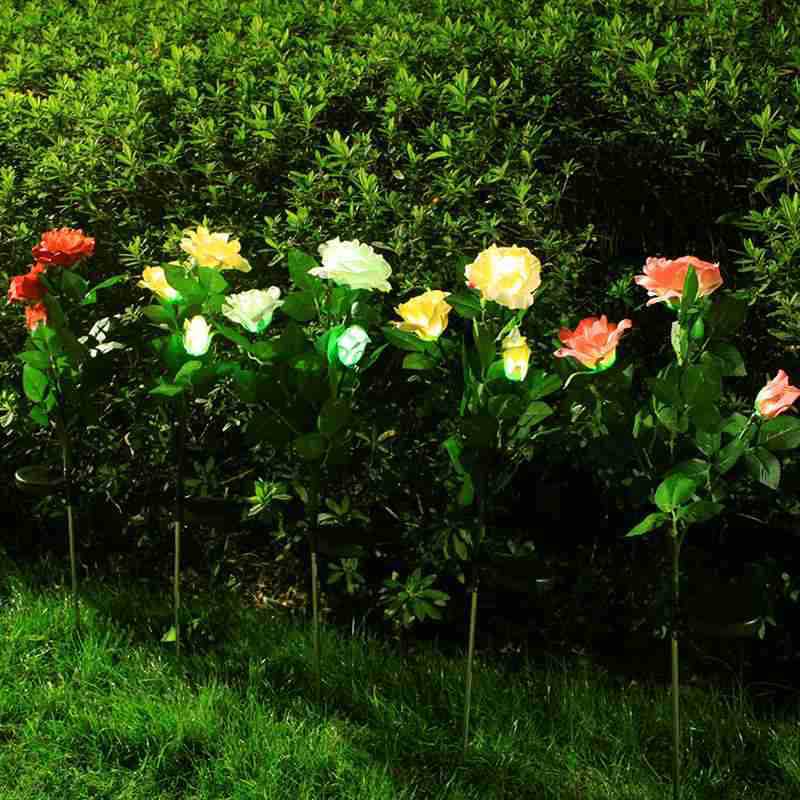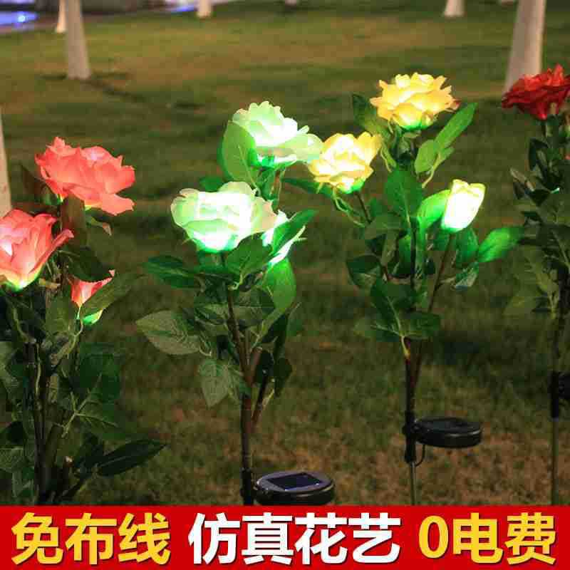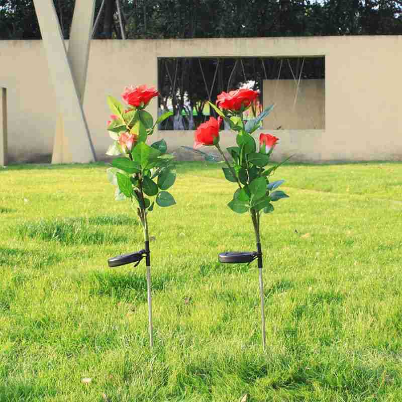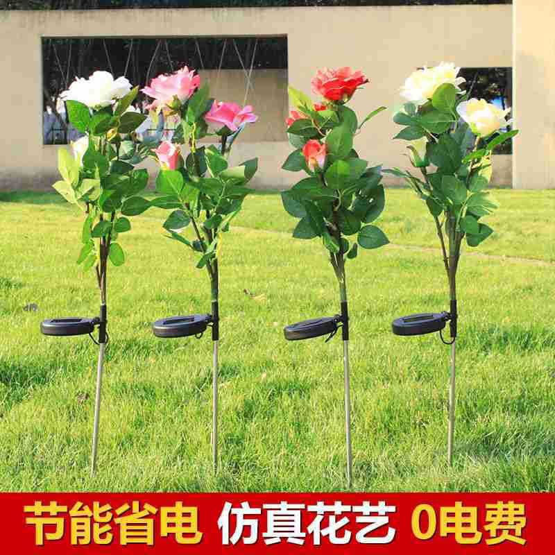 外贸专供太阳能玫瑰花灯 户外太阳能家用花园灯别墅草坪地插灯