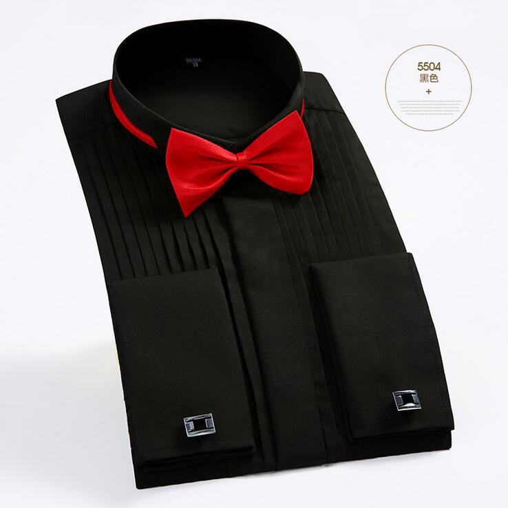 礼服婚纱影楼拍摄男式长袖纯色衬衫燕子领礼服衬衣司仪法式衬衫