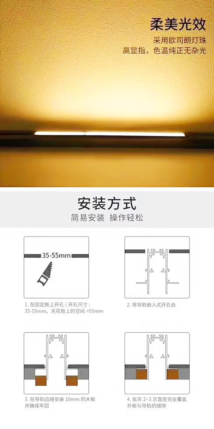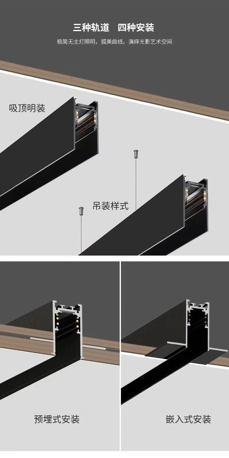 外贸专供磁吸轨道灯嵌入式无主灯照明设计明装led轨道导轨灯48V