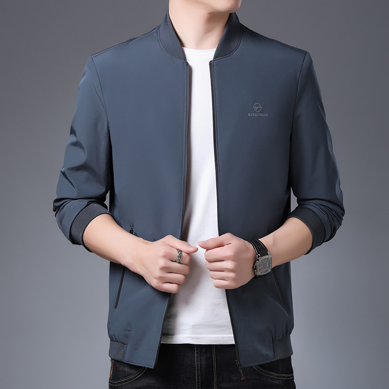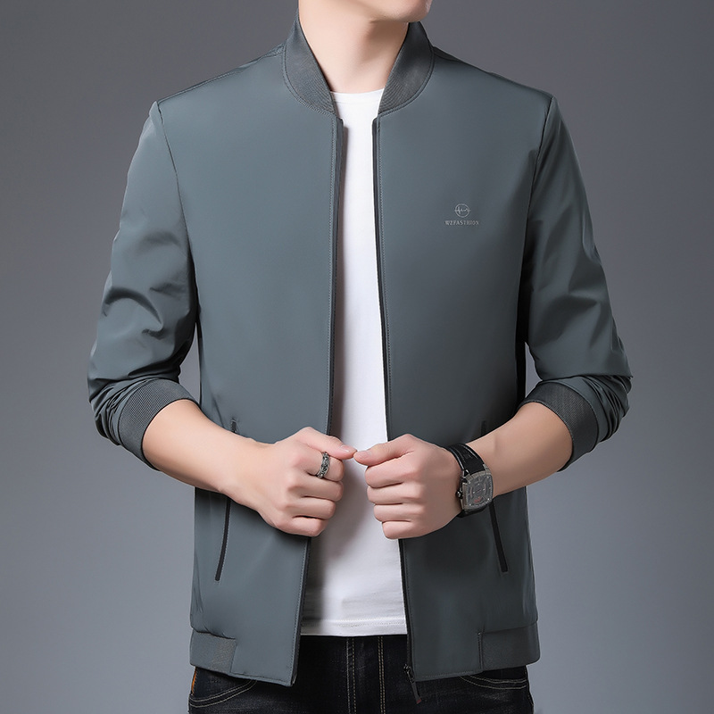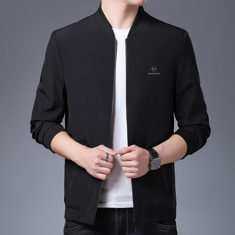 春秋夹克男中年基础款棒球领免烫外套2020年涤纶男士夹克外套批发