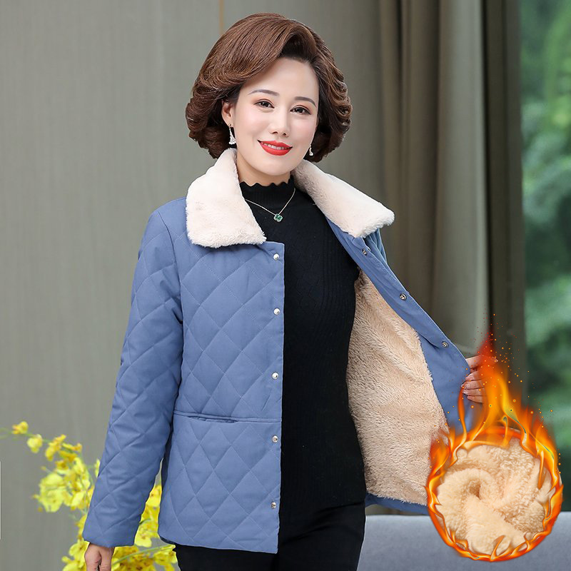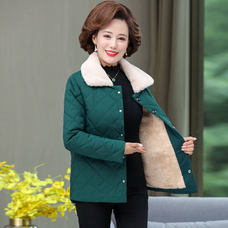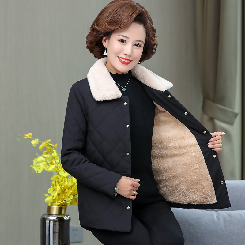 妈妈秋冬装棉衣中年妇女棉服加绒短款棉袄中老年女装外套
