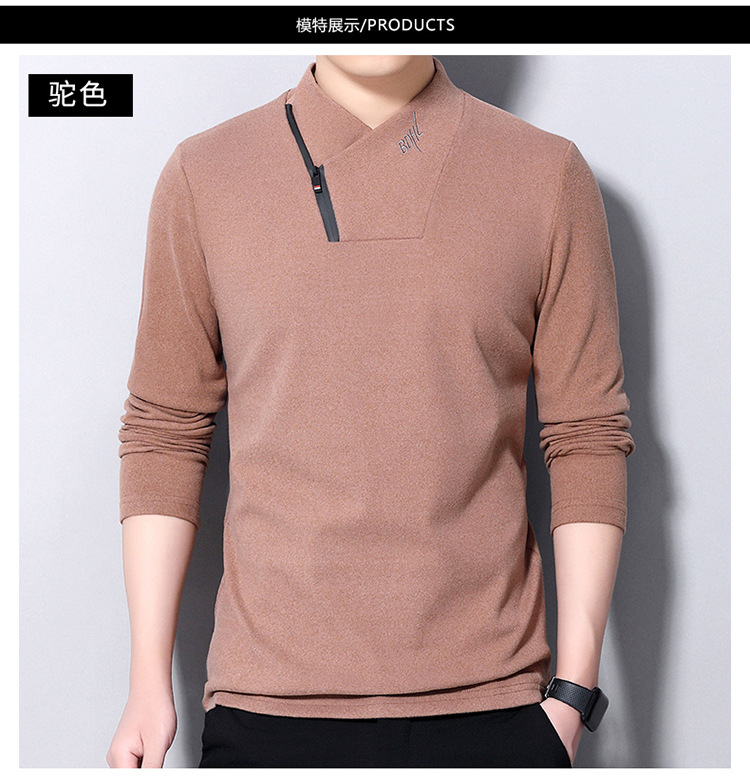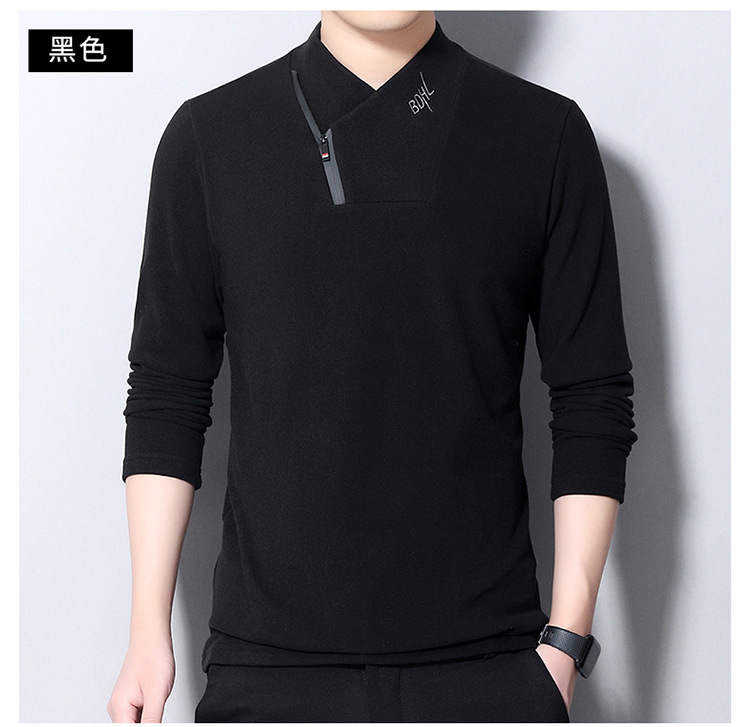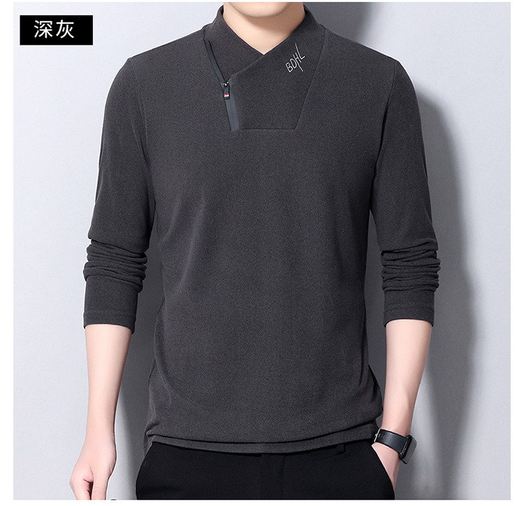 中年男长袖体恤卫衣秋冬港风休闲双面绒潮领打底青年男T恤斜拉链