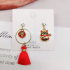 银针红色新娘喜字耳环女不对称中国结耳坠扇子灯笼喜庆流苏耳饰品