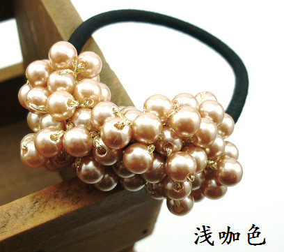 韩国新款发饰头饰 淑女手工串珠高档珍珠发绳发圈扎头发皮筋