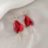 韩国气质新款红色花瓣耳环s925银针长款流苏锆石耳钉网红个性耳饰