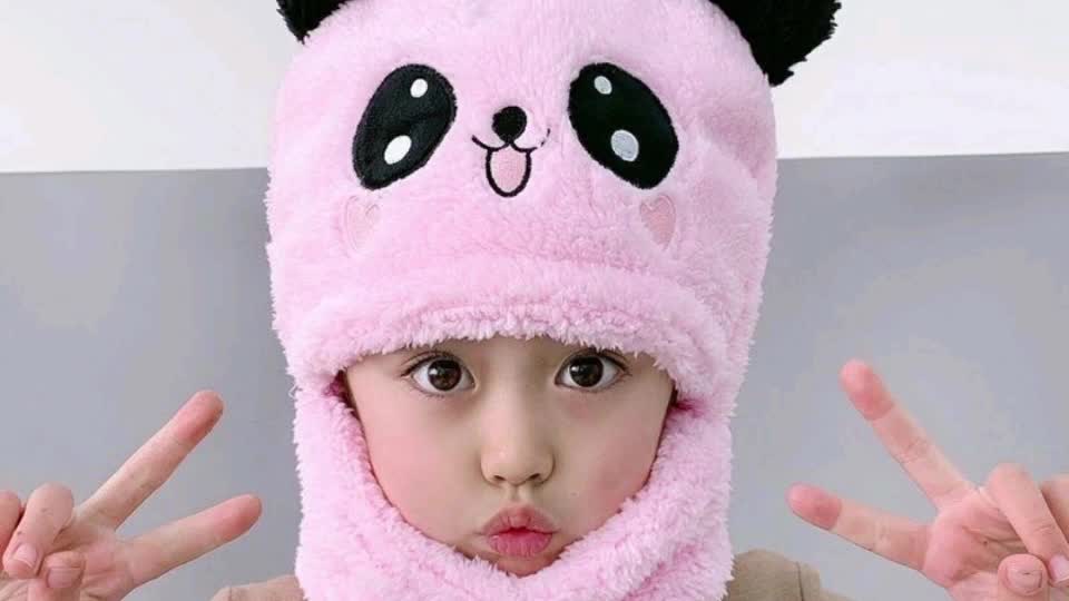 儿童帽子女童男童秋冬季帽子围脖一体可爱加厚保暖宝宝遮脸护耳帽