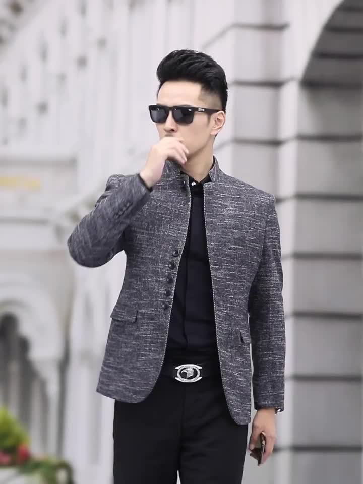 男士中山装秋季新款韩版修身唐装男中式立领中山装中国风男装外套