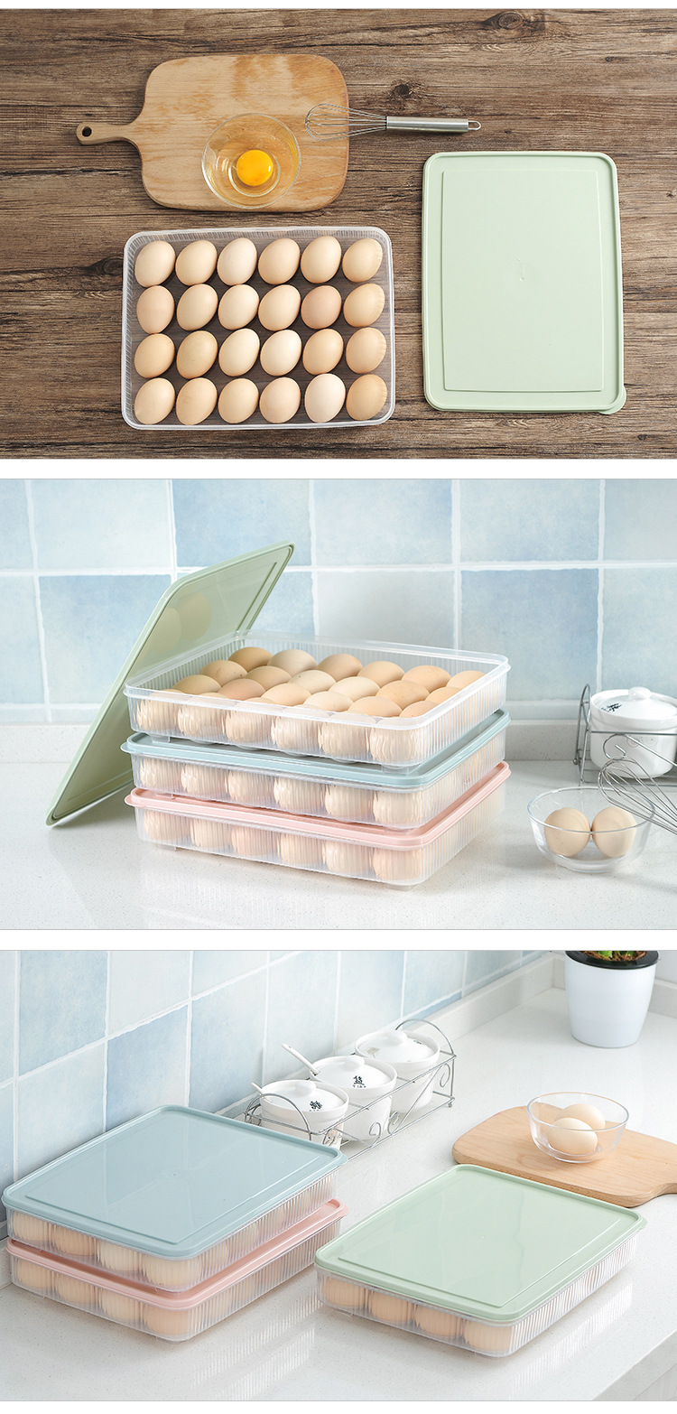 可叠加带盖鸡蛋收纳盒24格装蛋防摔架托厨房食品保鲜储物盒子蛋托