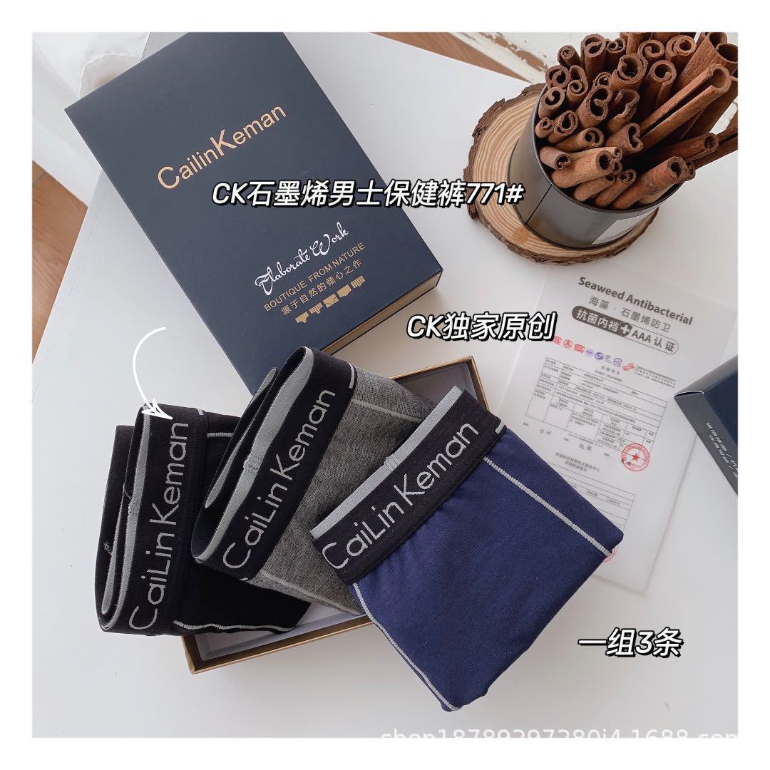 厂家正品CK石墨烯保健裤海藻男士平角时尚莫代尔四角裤3条装