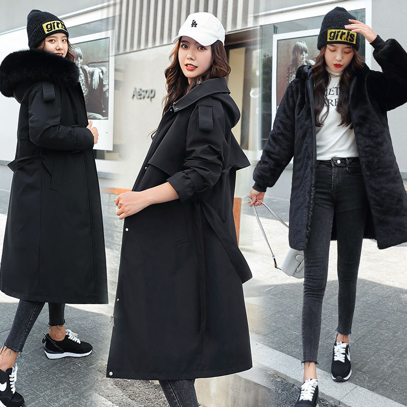 速卖通派克服20棉衣女长款冬新款时尚过膝一衣三穿活里活面棉服女