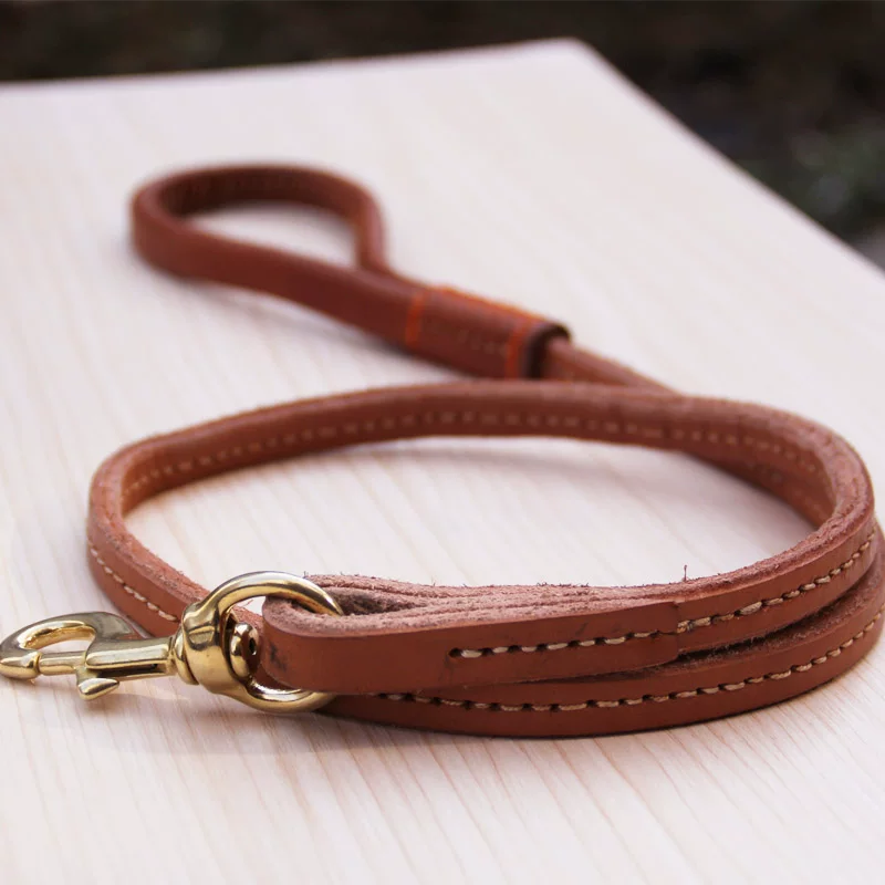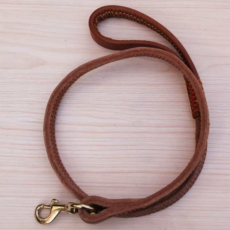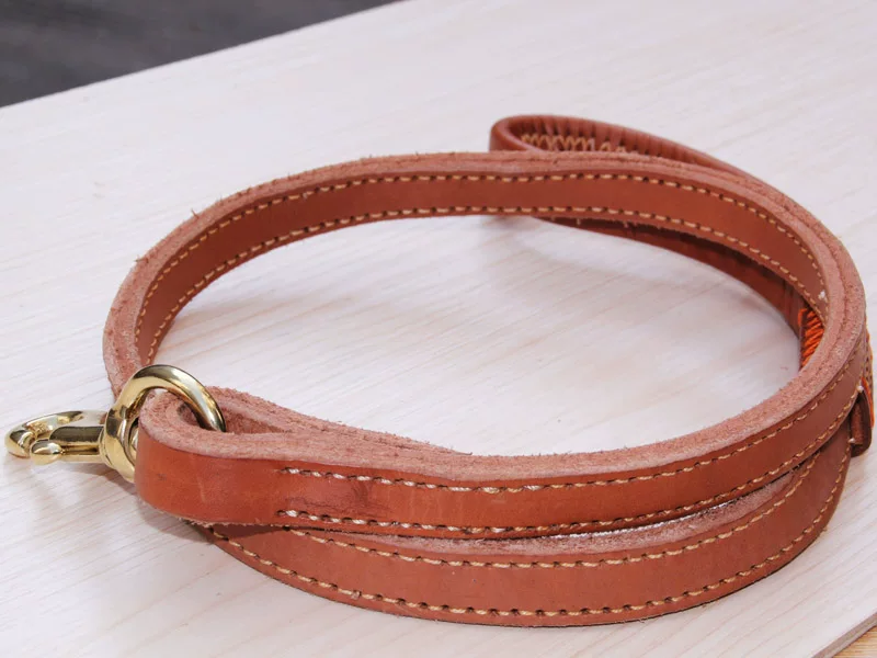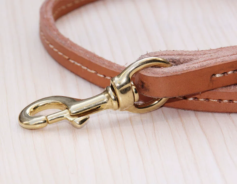 牛皮铜扣黄牛皮牵引绳加厚双层牛皮牵引绳铜扣狗链子狗绳