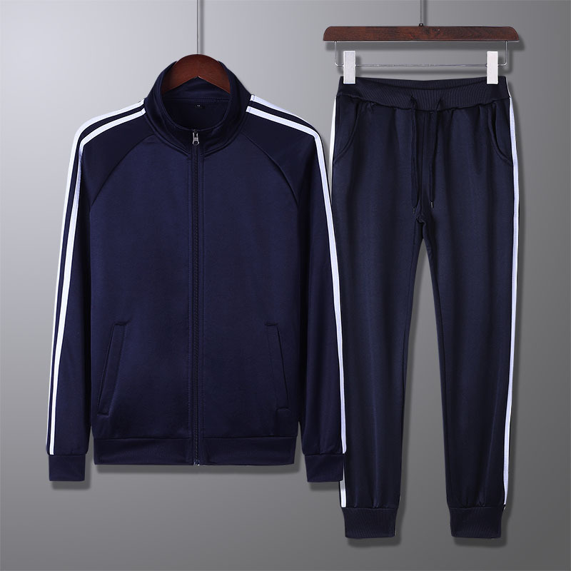 加厚加绒冬款跑步运动两件套三条杠男士卫衣开衫休闲套装批发定制