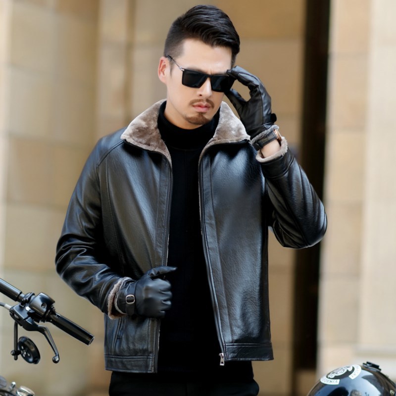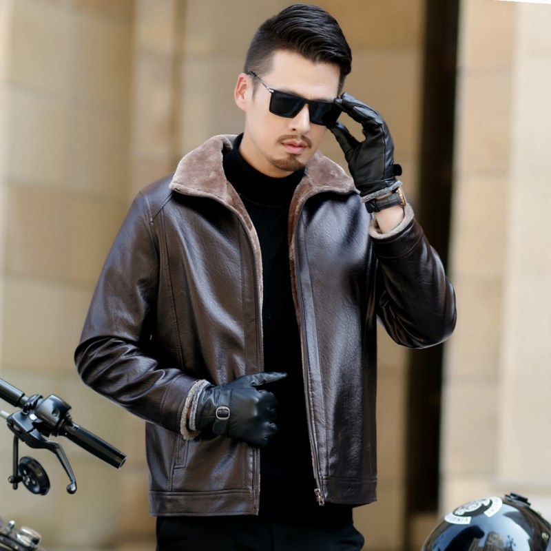 2018冬季新款加绒加厚皮毛一体皮衣男式外套翻领中年男士休闲外套