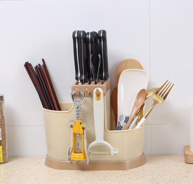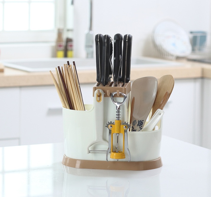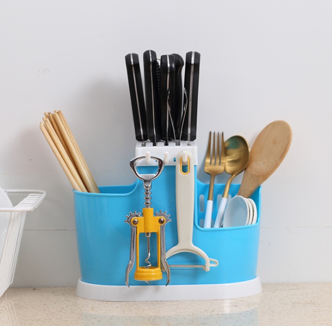 创意厨房多功能塑料带刀架筷子筒 篓餐具架悬挂式刀叉勺 沥水筷子