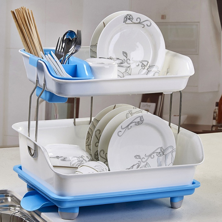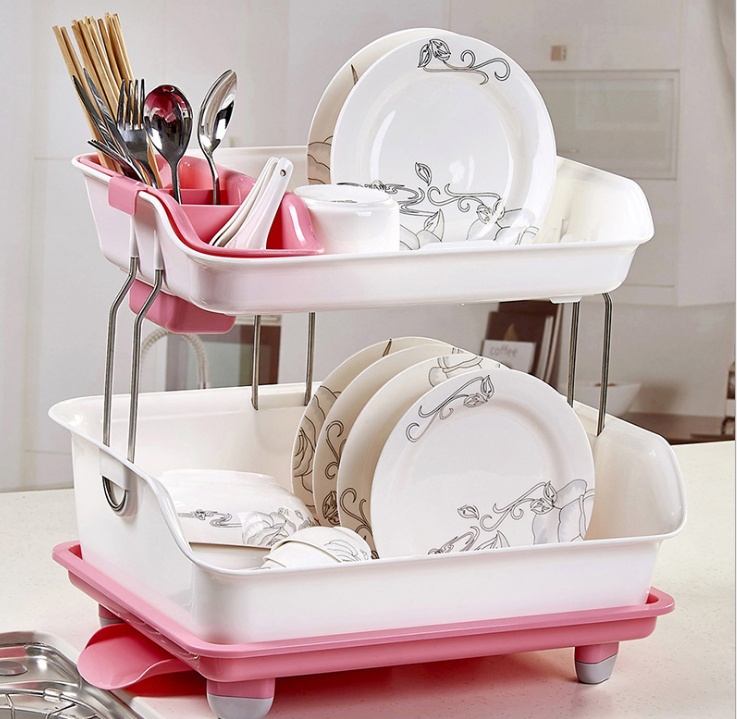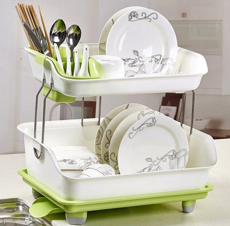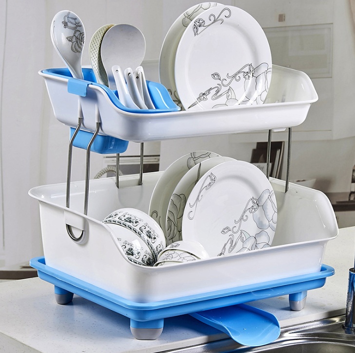 厨房双层置物架 加厚塑料沥水架碗架 餐具碗筷收纳架 碗碟架碗柜