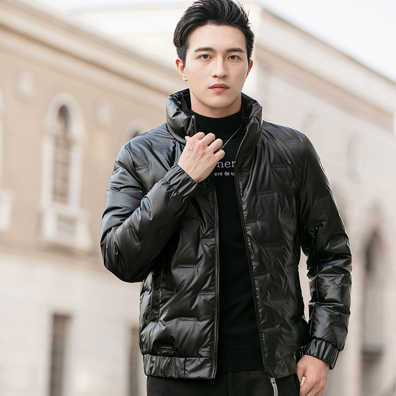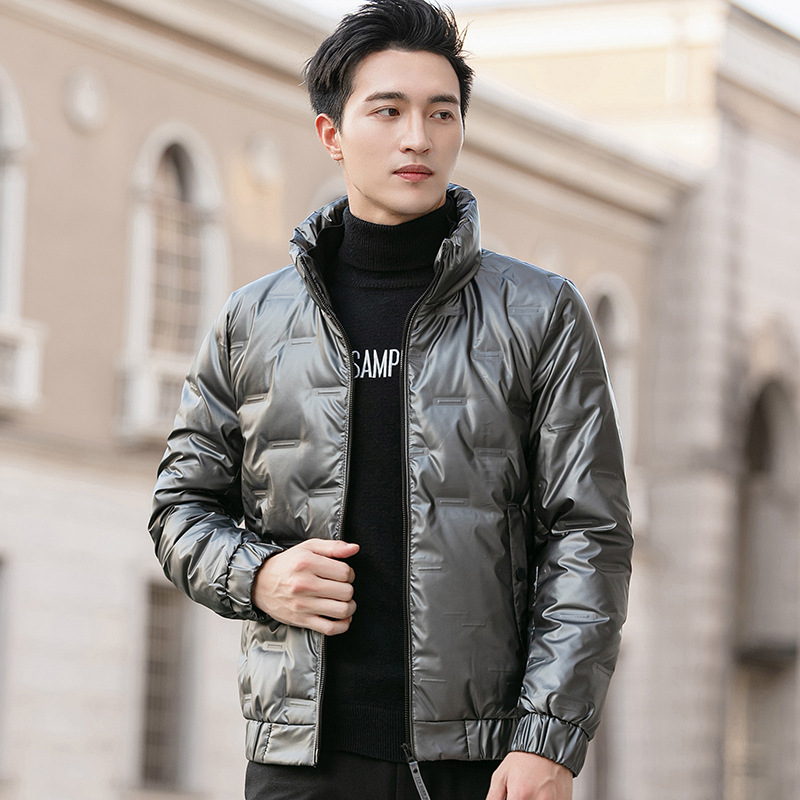 羽绒服男2020冬季新款韩版潮流帅气亮面鸭绒加厚保暖立领青年外套