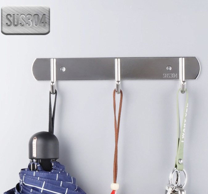 简约创意墙上壁挂收纳挂钩 304不锈钢多功能3连钩