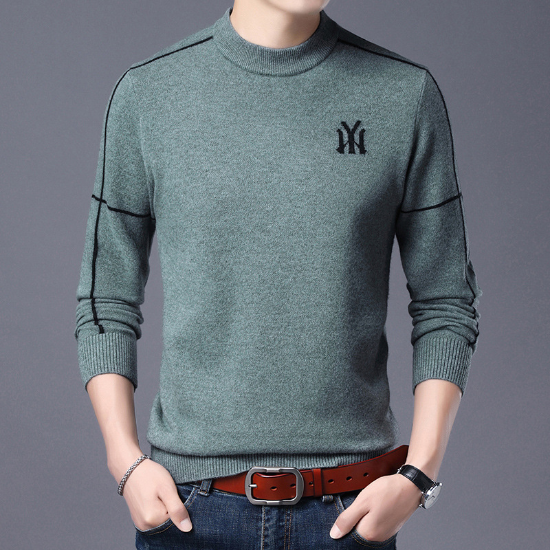 男士羊毛衫冬季男装厚款毛衣青年男式韩版圆领套头打底衫批发