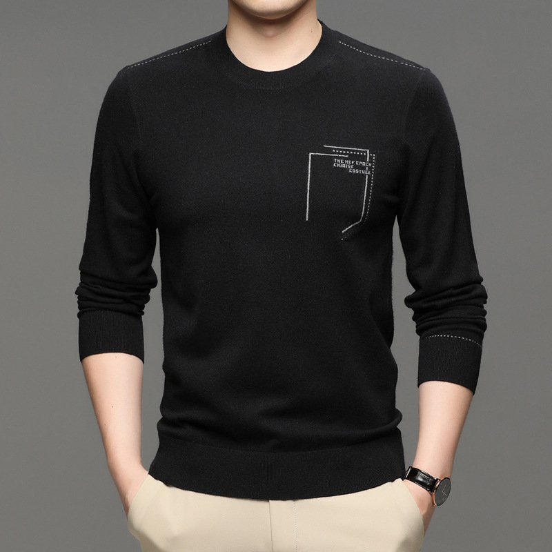 含羊毛 秋冬男士款圆领休闲款保暖打底针织衫毛衣线衣羊毛衫男