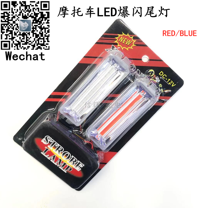摩托车爆闪尾灯12V中网爆闪灯LED改装刹车灯警示灯红蓝爆闪工厂