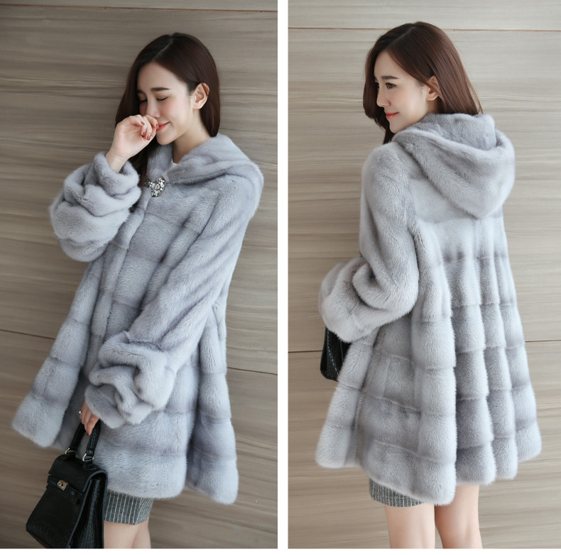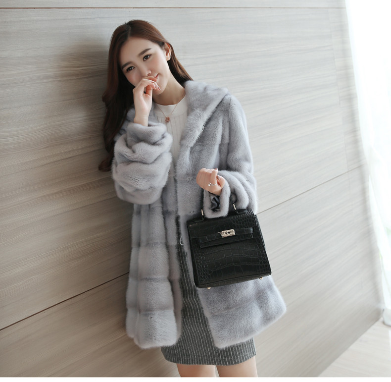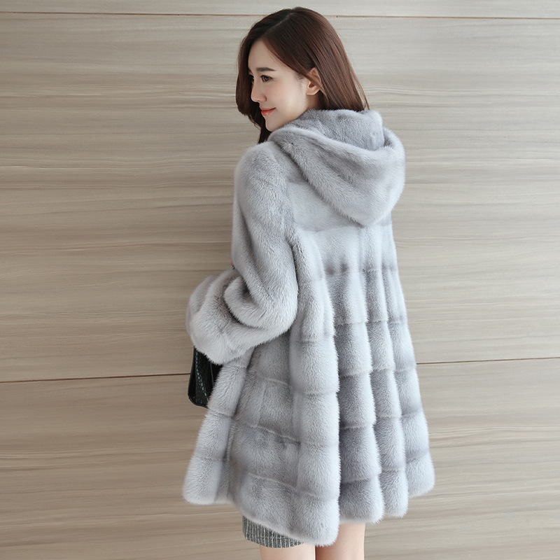 20秋冬仿貂绒女装中长款连帽皮草 加厚丹麦貂貂皮大衣大衣批发
