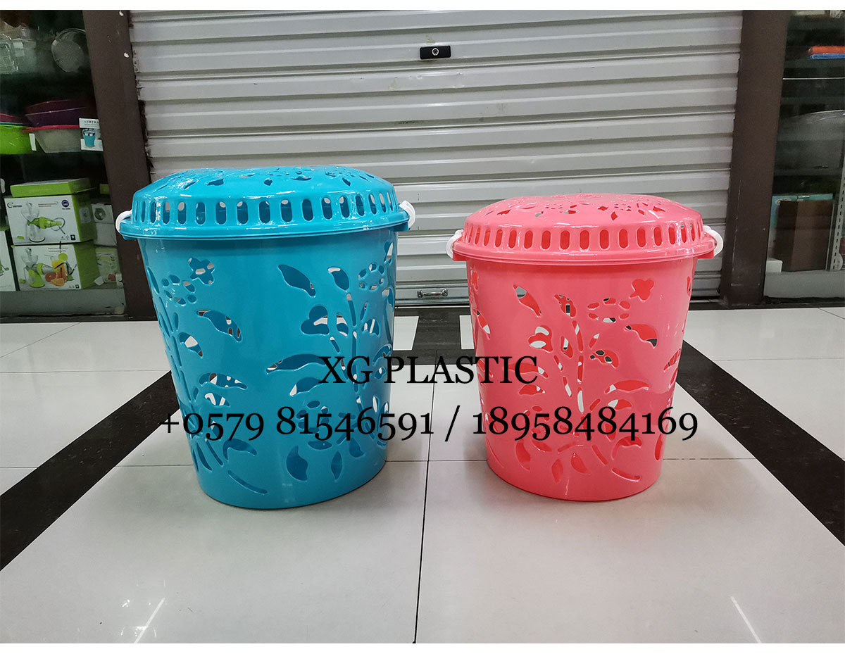 塑料篮子带盖大容量圆形脏衣篮家用杂物收纳篮创意花草镂空置物篮