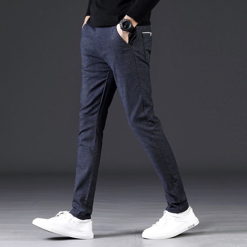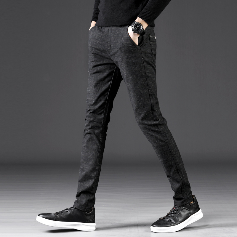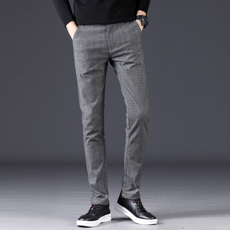 厂家直销春夏新款弹力休闲裤男士青年韩版修身格子小脚男裤子批发