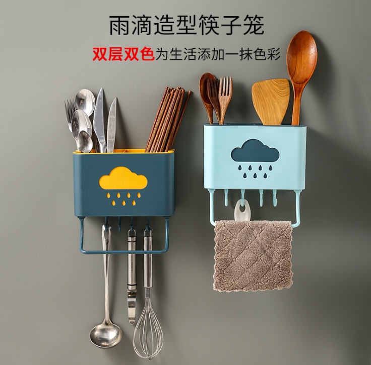 创意款双层塑料筷子笼筷笼厂家壁挂式多功能沥水筷子架厨房筷子筒