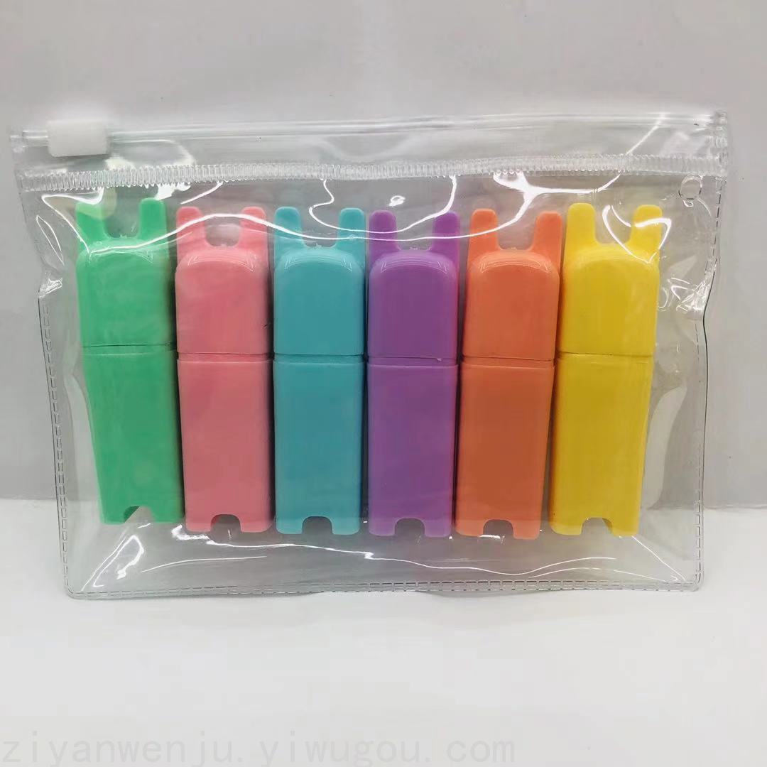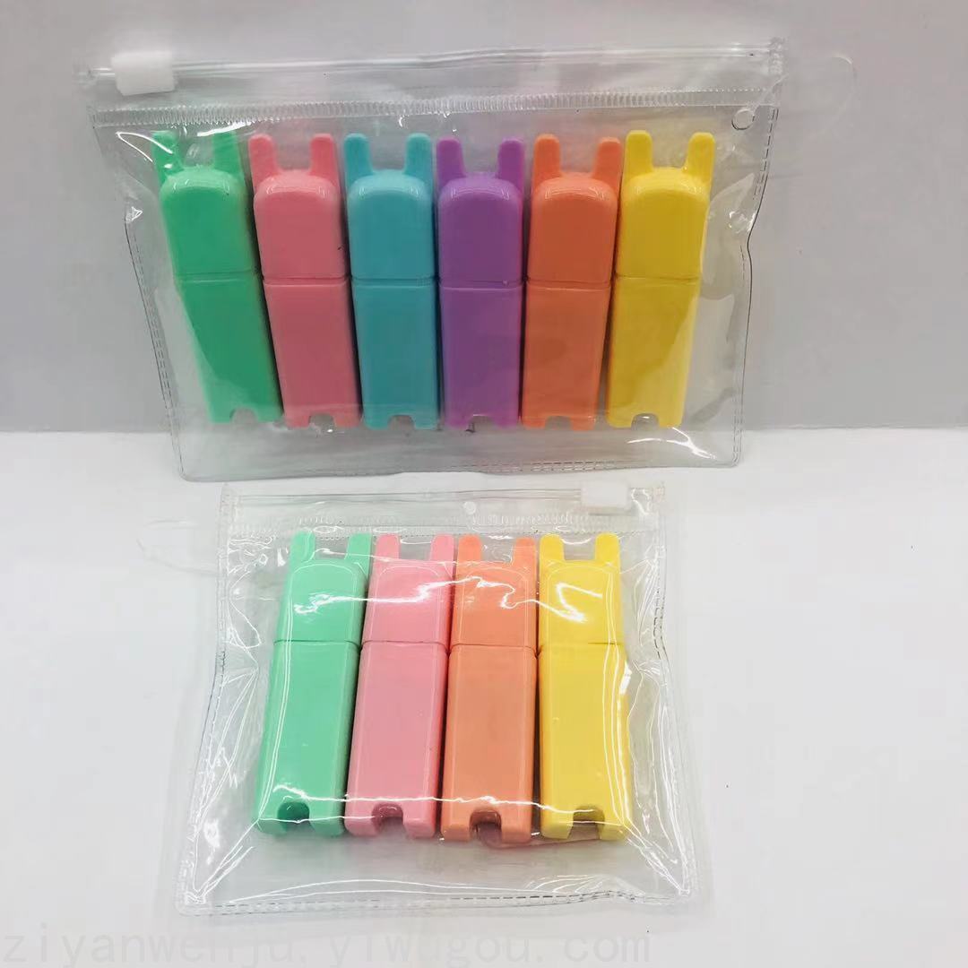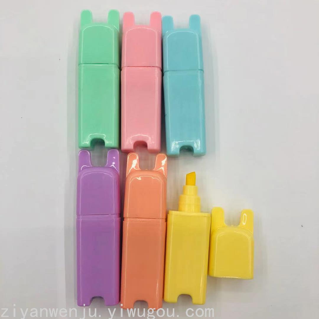 迷你小兔兔荧光笔 糖果色荧光标记笔 创意兔子造型荧光笔