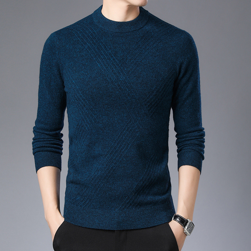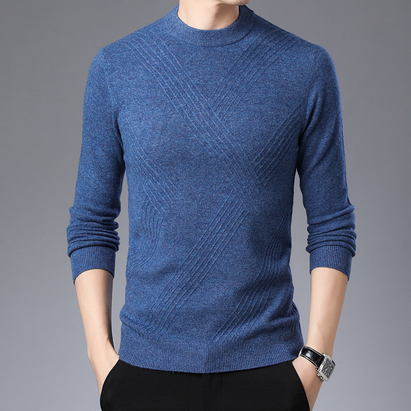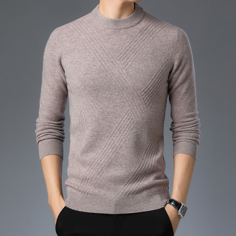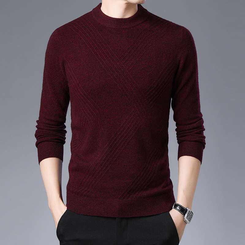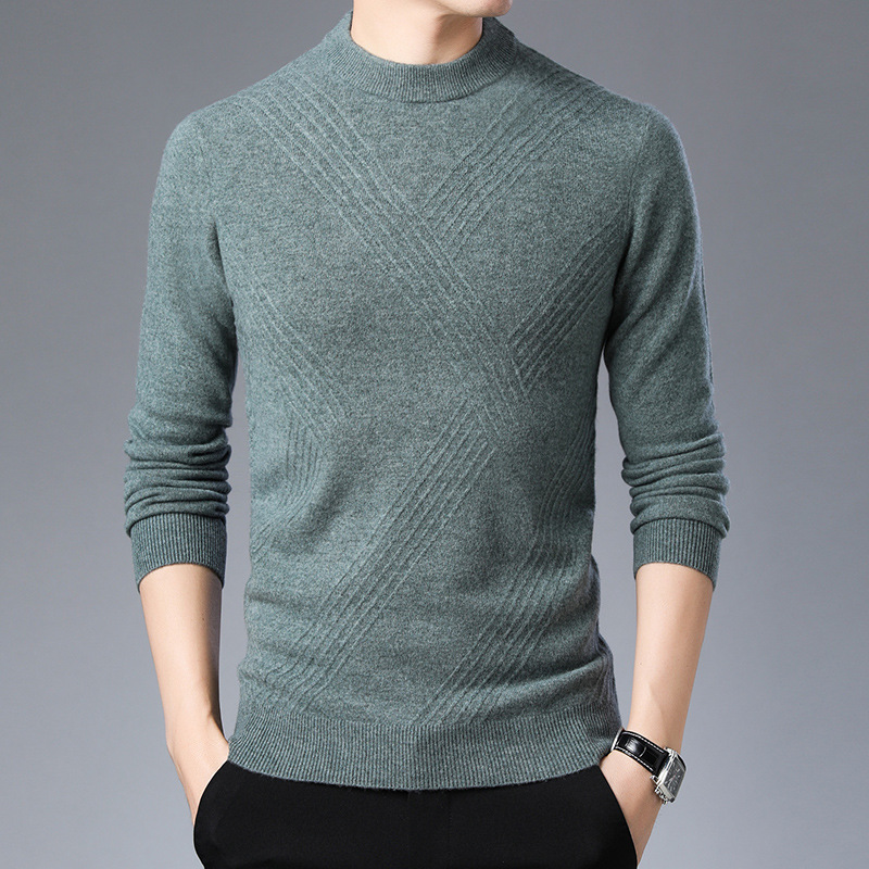批发男士纯色半高领纯羊毛衣男装秋冬季新款圆领套头针织羊绒衫男