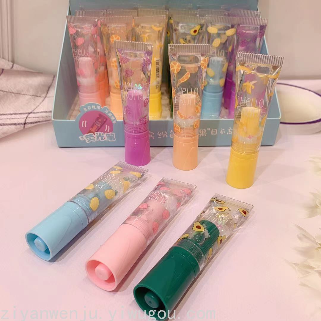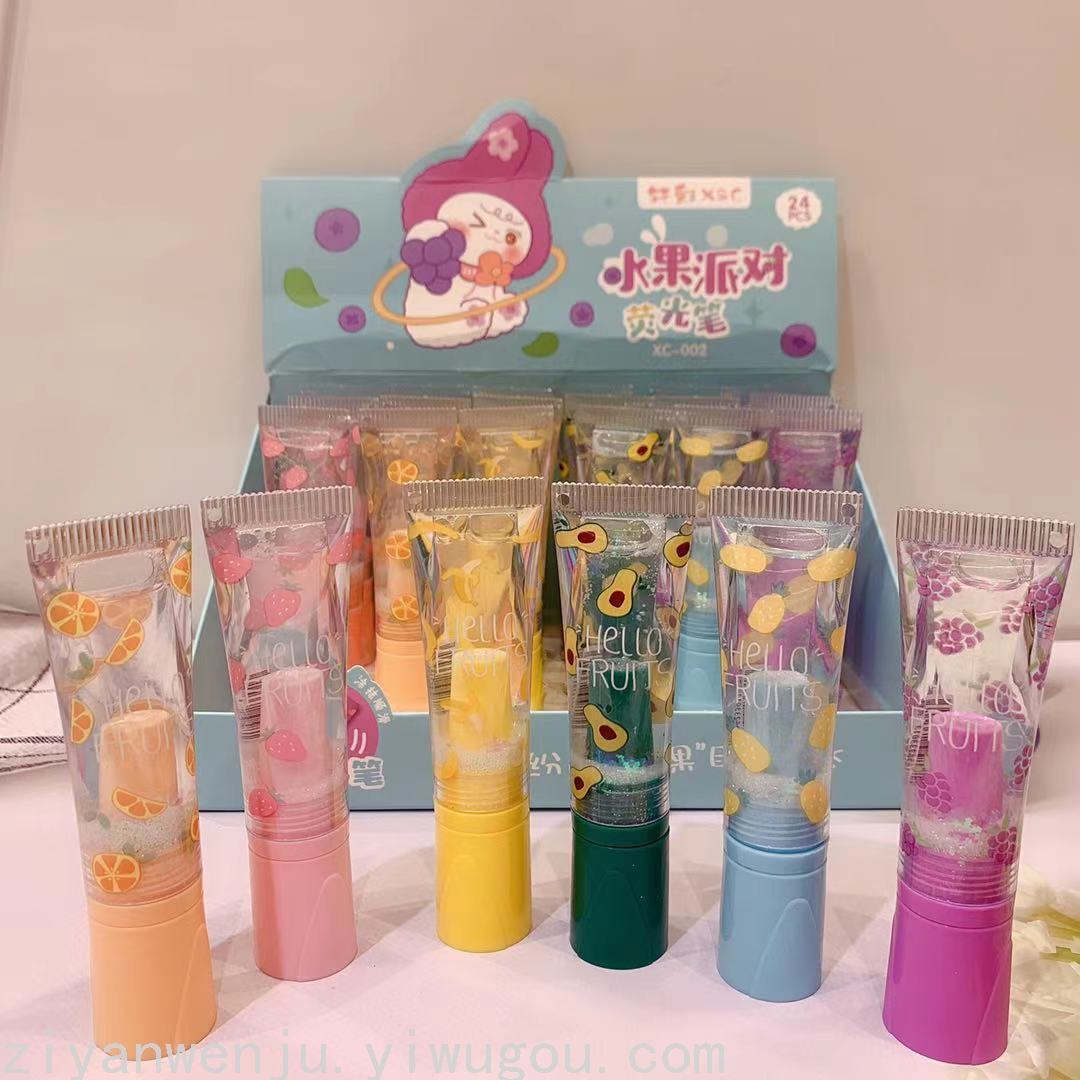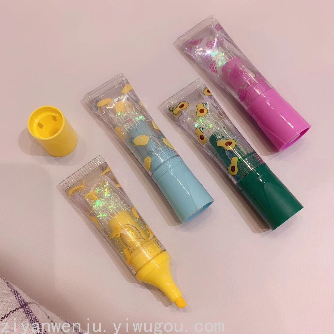 韩版新款水果派对流沙入油护手霜造型荧光笔学生标记重点荧光笔