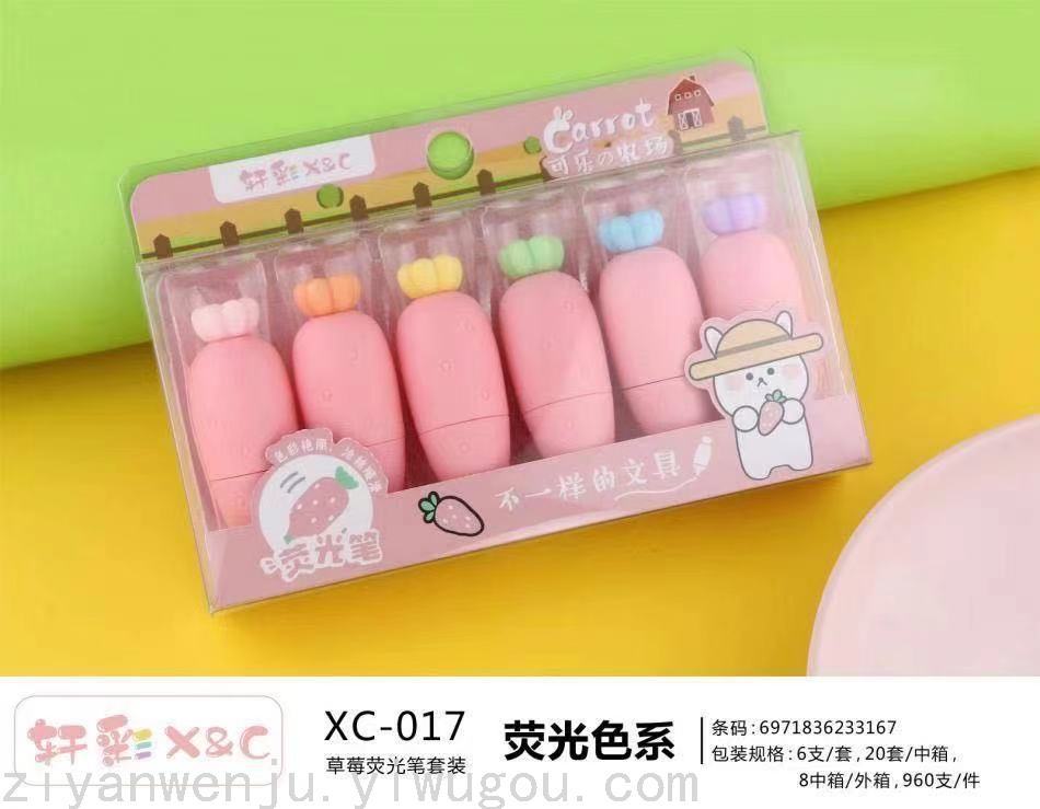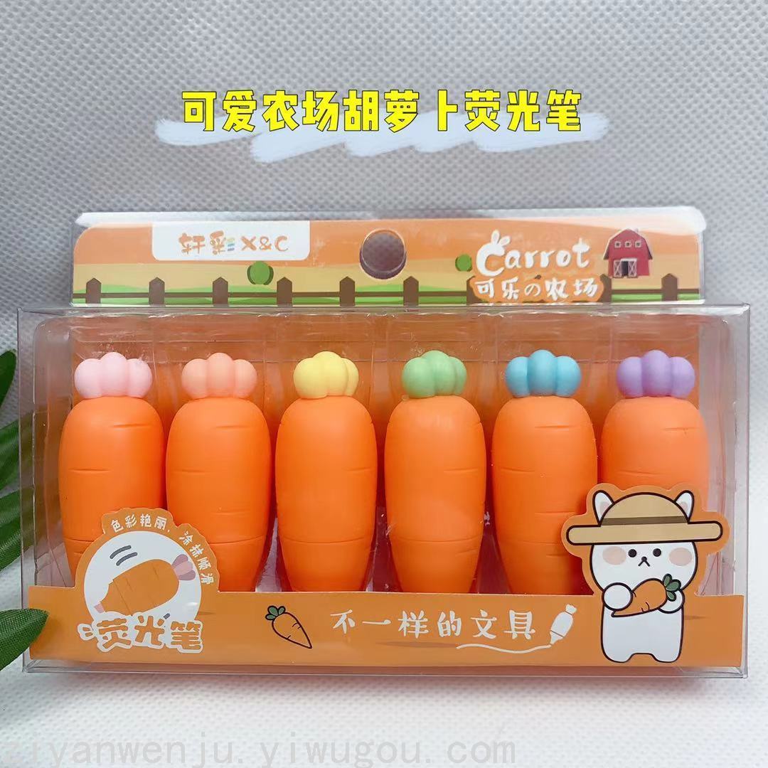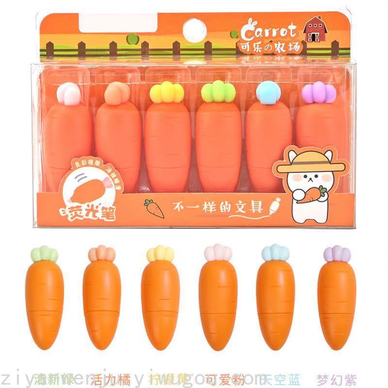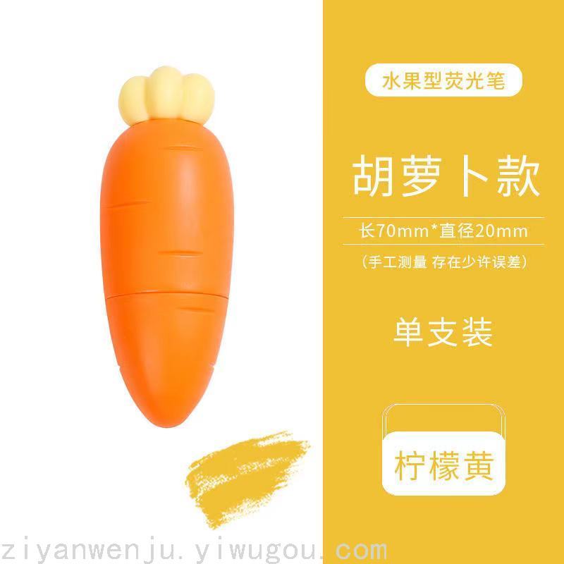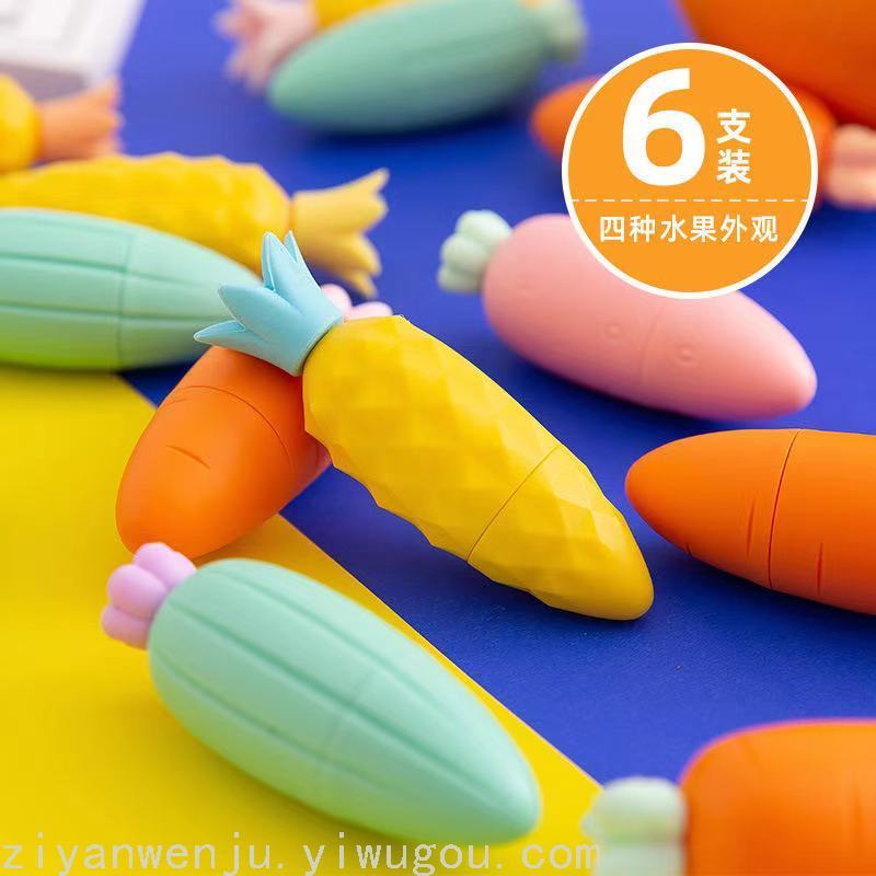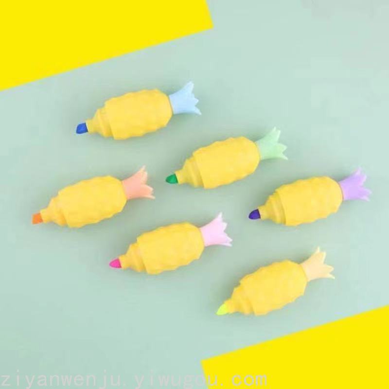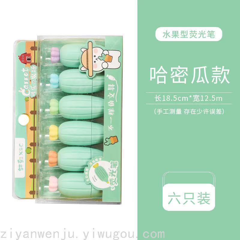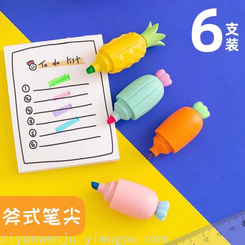 韩版可爱菠萝仙人掌胡萝卜草莓荧光笔卡通水果6色手帐涂鸦标记笔