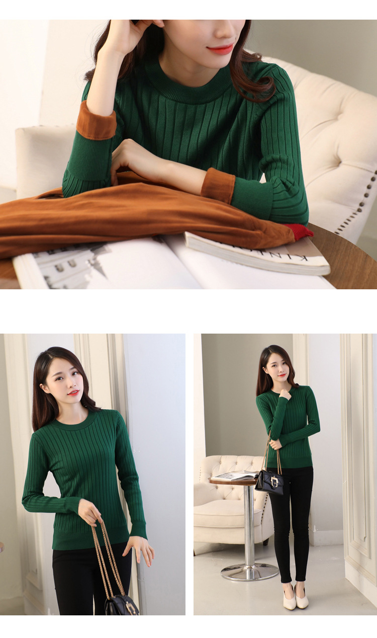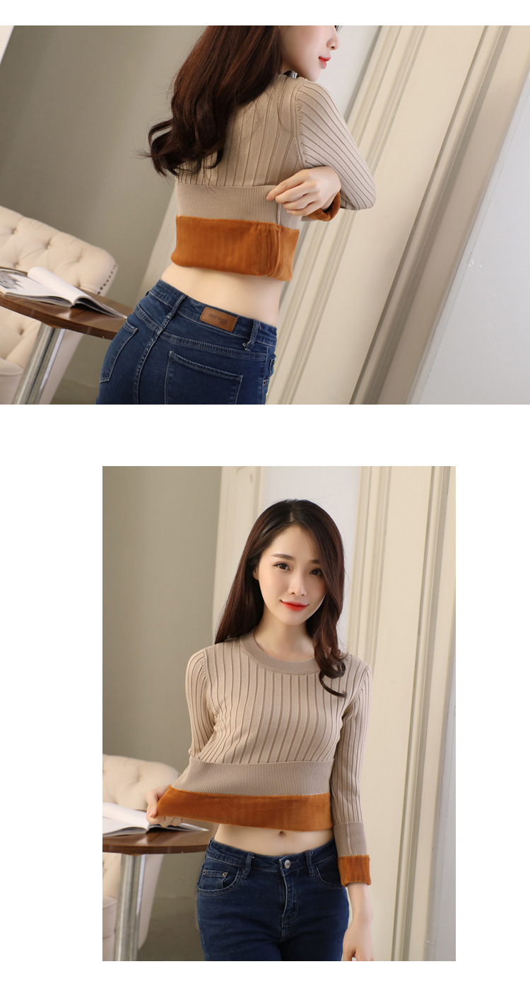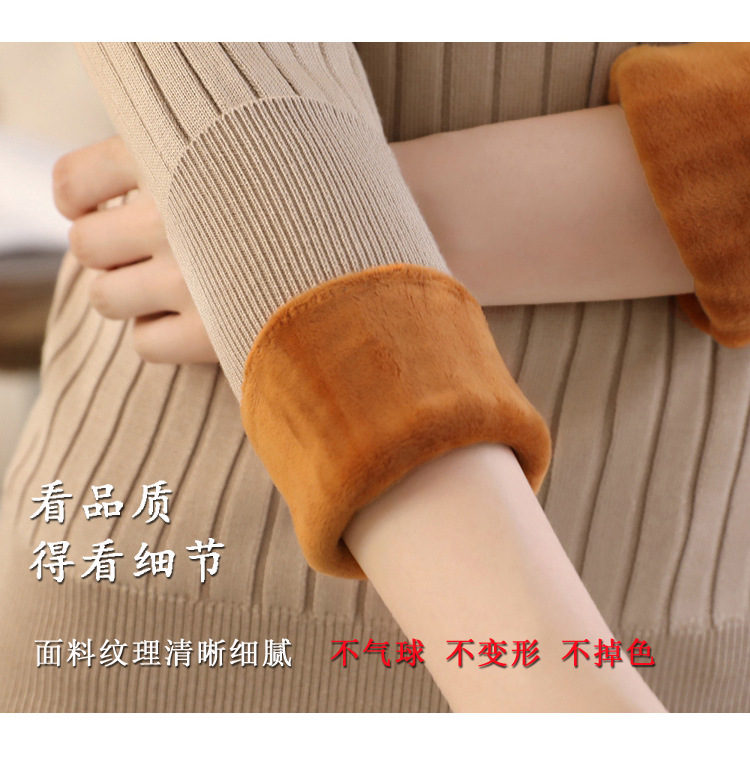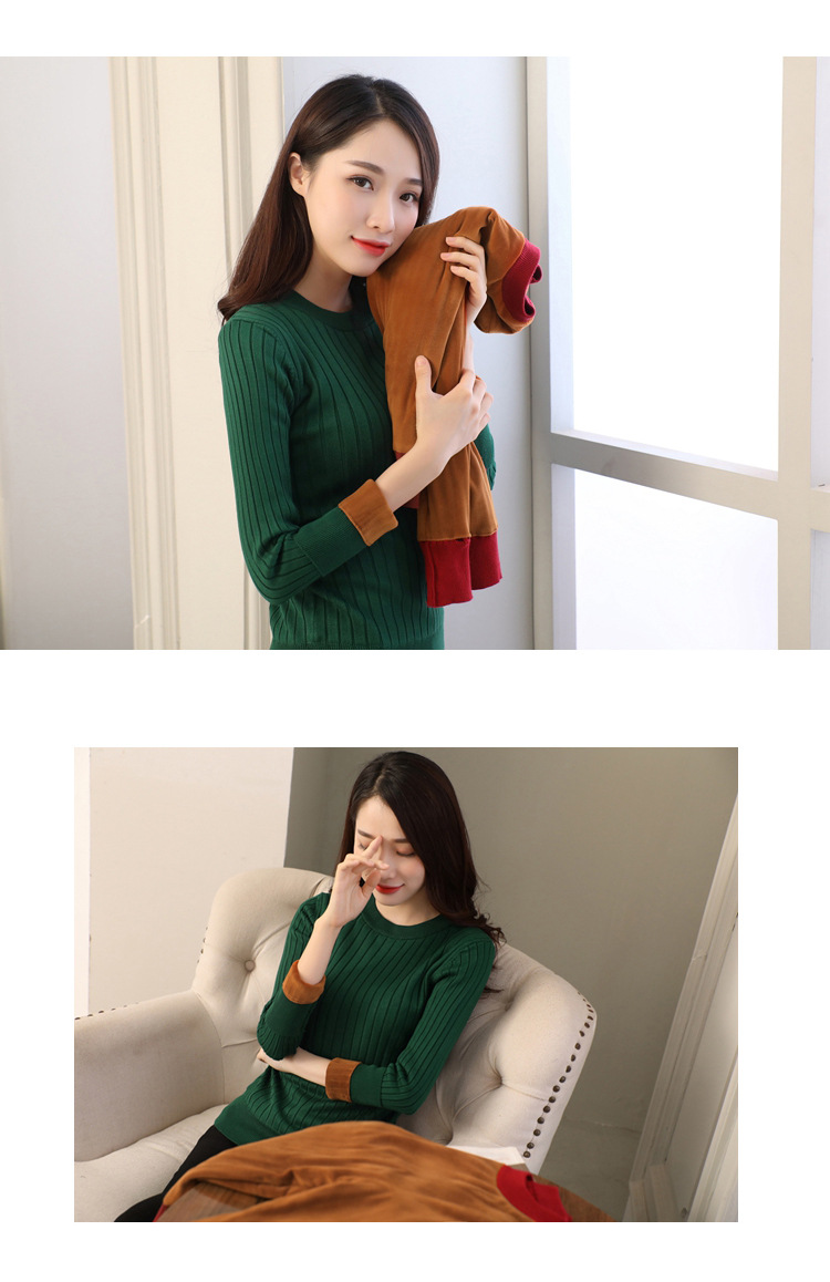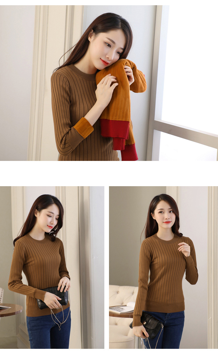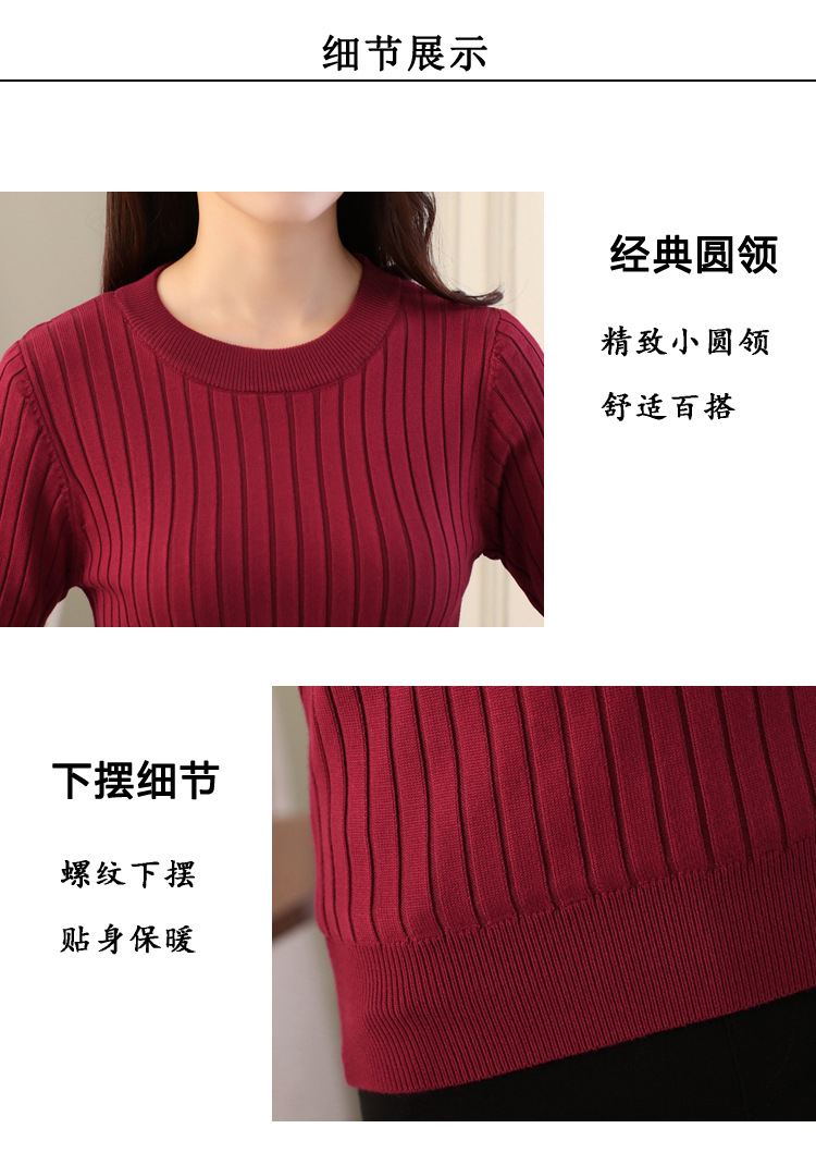 加绒长袖毛衣女秋冬加厚百搭圆领打底衫保暖衣服套头修身针织衫