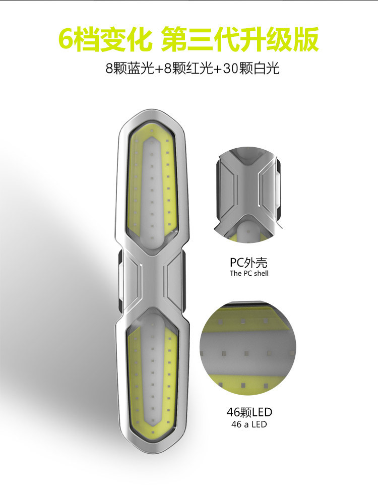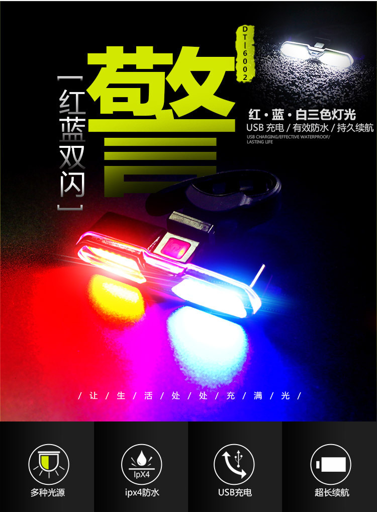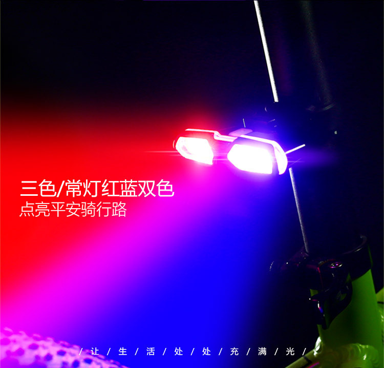 外贸专供三色USB充电自行车尾灯指示灯COB爆闪LED警示灯警示灯
