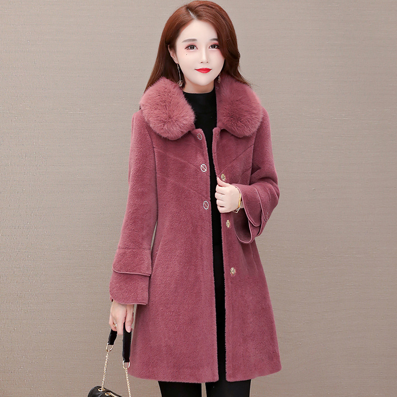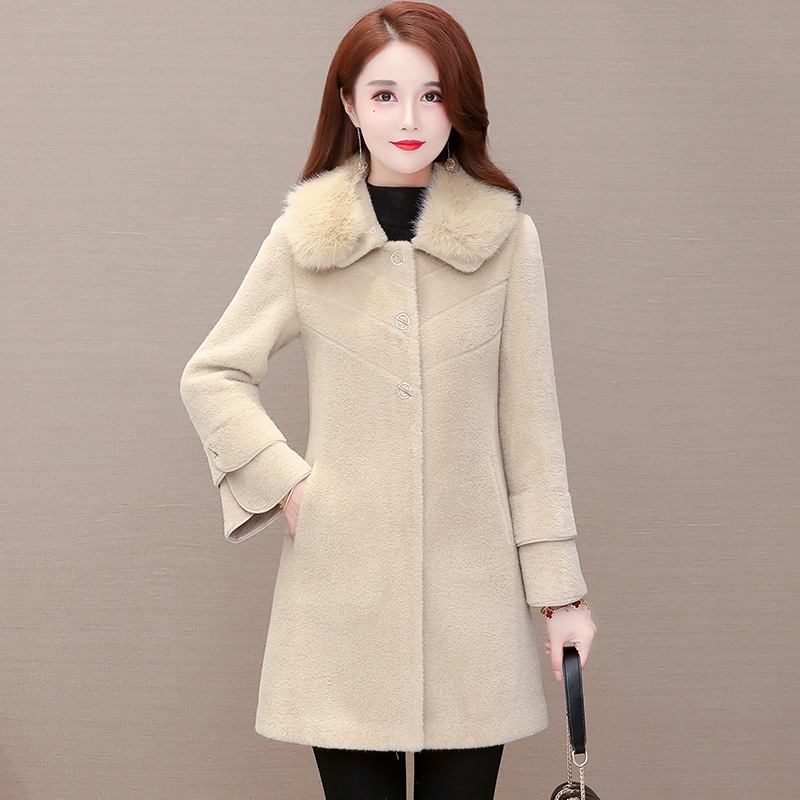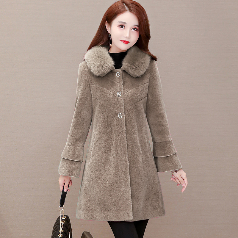 仿水貂绒外套女冬装2020年新款韩版保暖百搭中长款翻领毛呢大衣冬