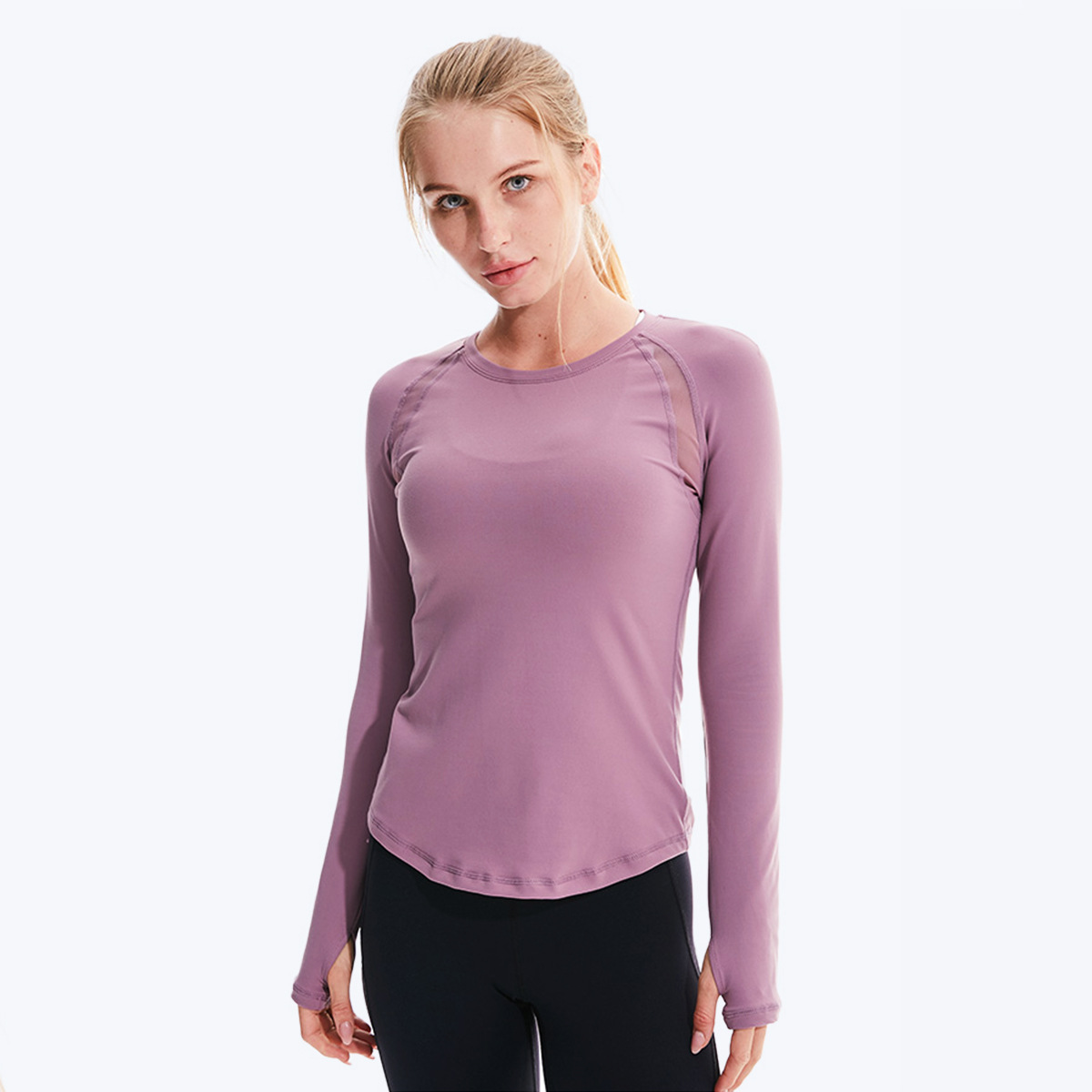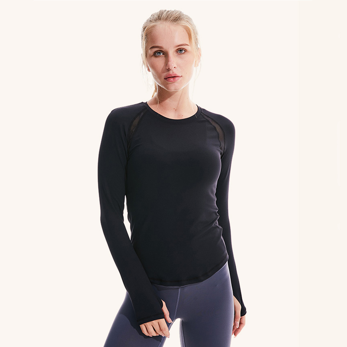 lulu网纱拼接瑜伽服长袖t恤女 圆带拇指洞健身瑜伽上衣女秋冬