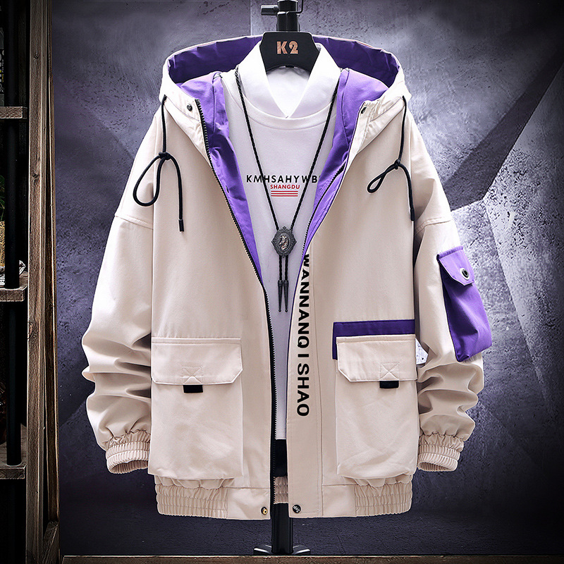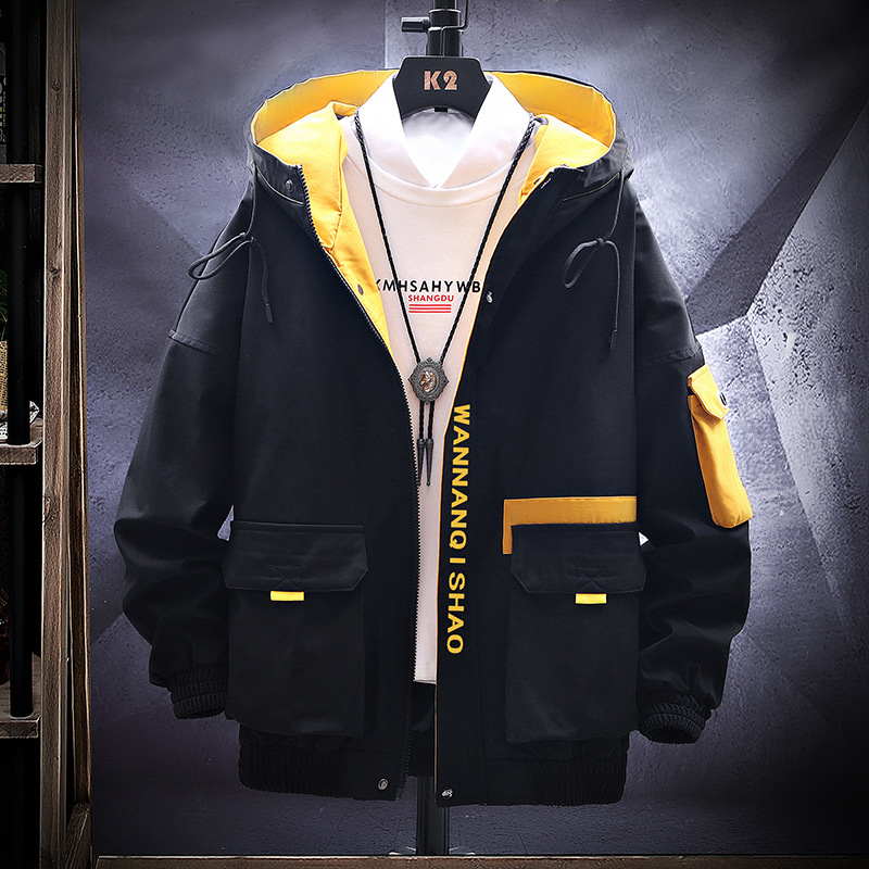 工装外套男秋冬季加厚潮流连帽加绒夹克韩版修身学生休闲男装上衣