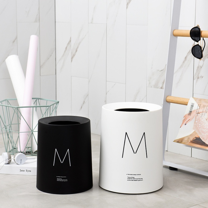 M印花款欧式北欧创意卫生间办公室卧室客厅家用无盖纸篓垃圾桶8L