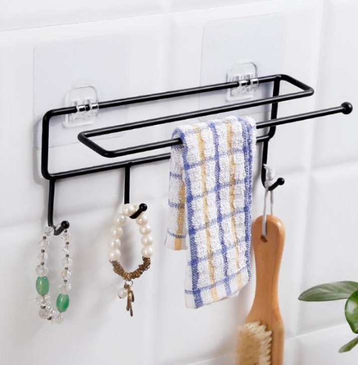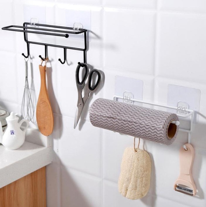 厨房铁艺抹布架无痕粘胶免打孔卫浴置物架挂钩卷纸收纳架纸盒包装