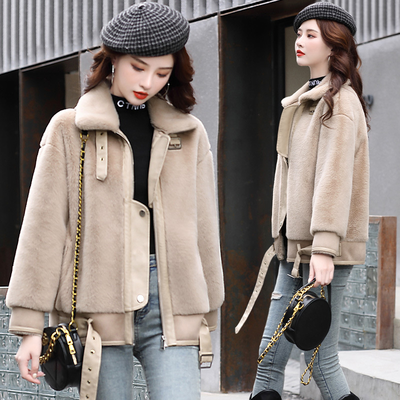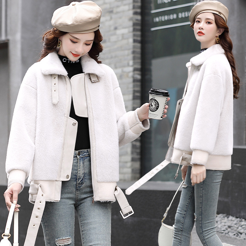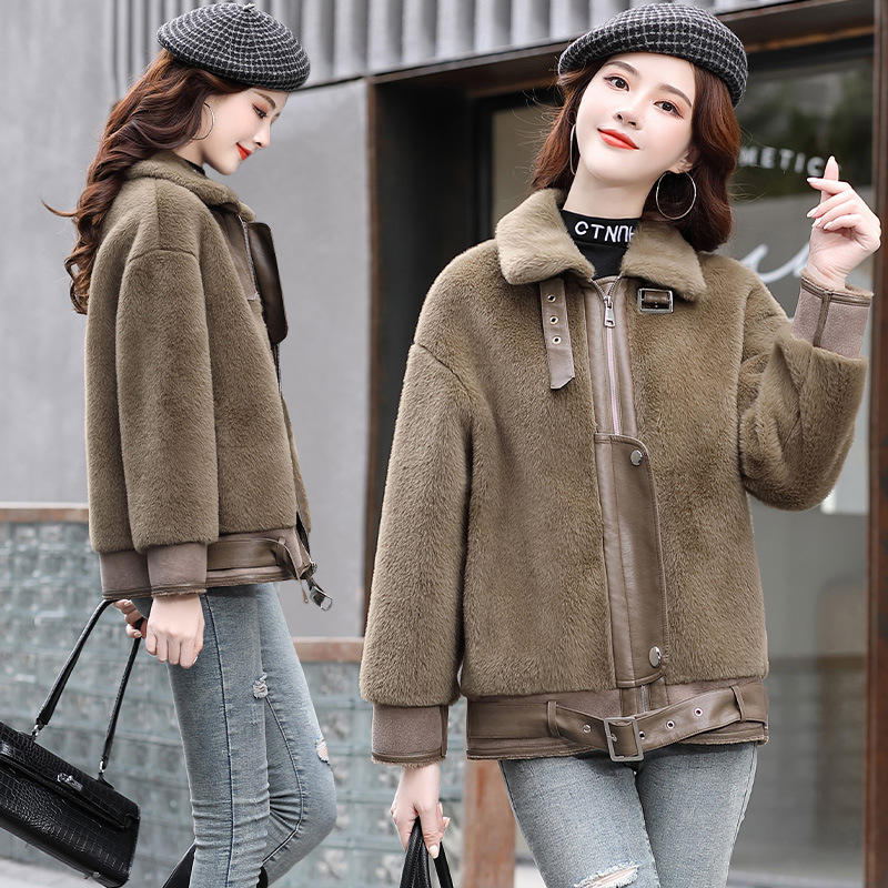 韩版中长款仿羊羔毛外套女显瘦皮毛一体中长款外套 Z2086