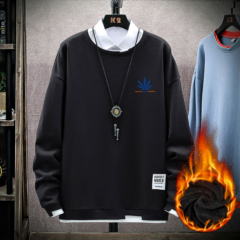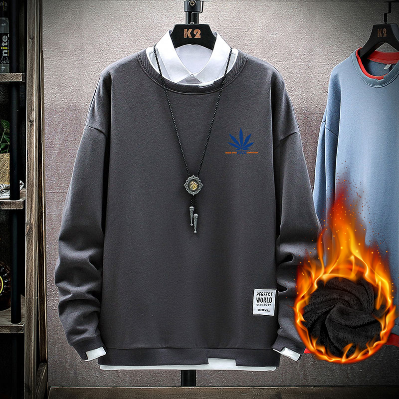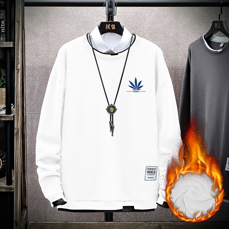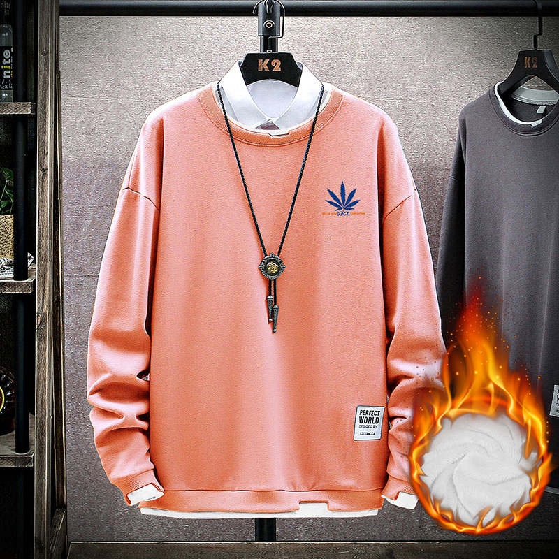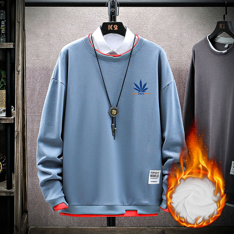青少年加绒卫衣男圆领潮流秋冬装上衣服初中高中学生帅气长袖T恤